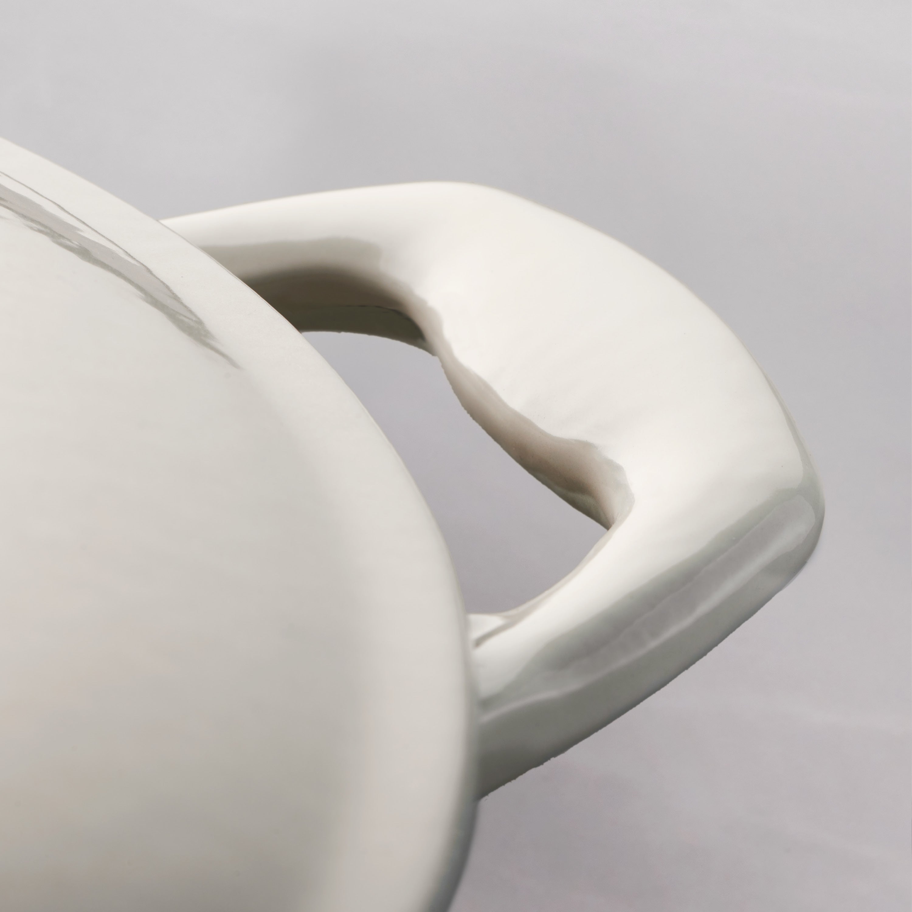 Not just a tool for restaurant chefs-home cooks and aspiring chefs are turning to sauciers for everything from risotto, to gravy, to oatmeal, as well as sauces that need steady stirring. Tramontina's 3 Qt Enameled Cast Iron Covered Saucier is prized by cooks for heat retention and even cooking. This saucier pan comes in a vibrant, gradated porcelain-enamel exterior finish offering elegant kitchen to table serving. The self-basting condensation ridges on the lid uniformly collect and direct vapors onto food producing moist and savory dishes - making the saucier a perfect vessel for slow heating to tenderized meats, poultry, and vegetables or evenly reducing sauces. The heavy-gauge cast iron covered cooking surface is coated with off-white, smooth porcelain-enamel and the sturdy handles make handling a filled pan more manageable.