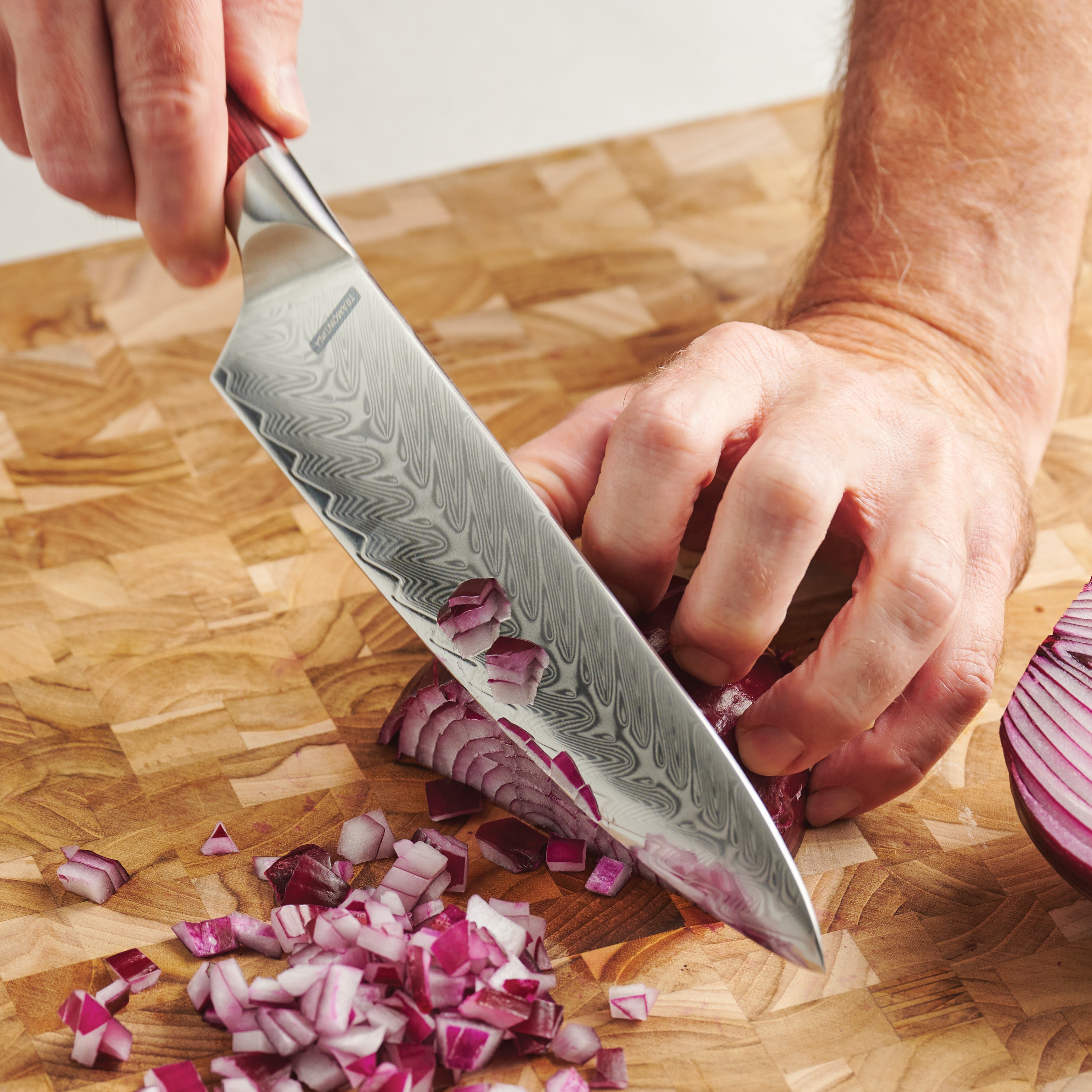- 67-layer 8-inch Damascus Steel Chef€™s Knife, Maroon Polywood handle