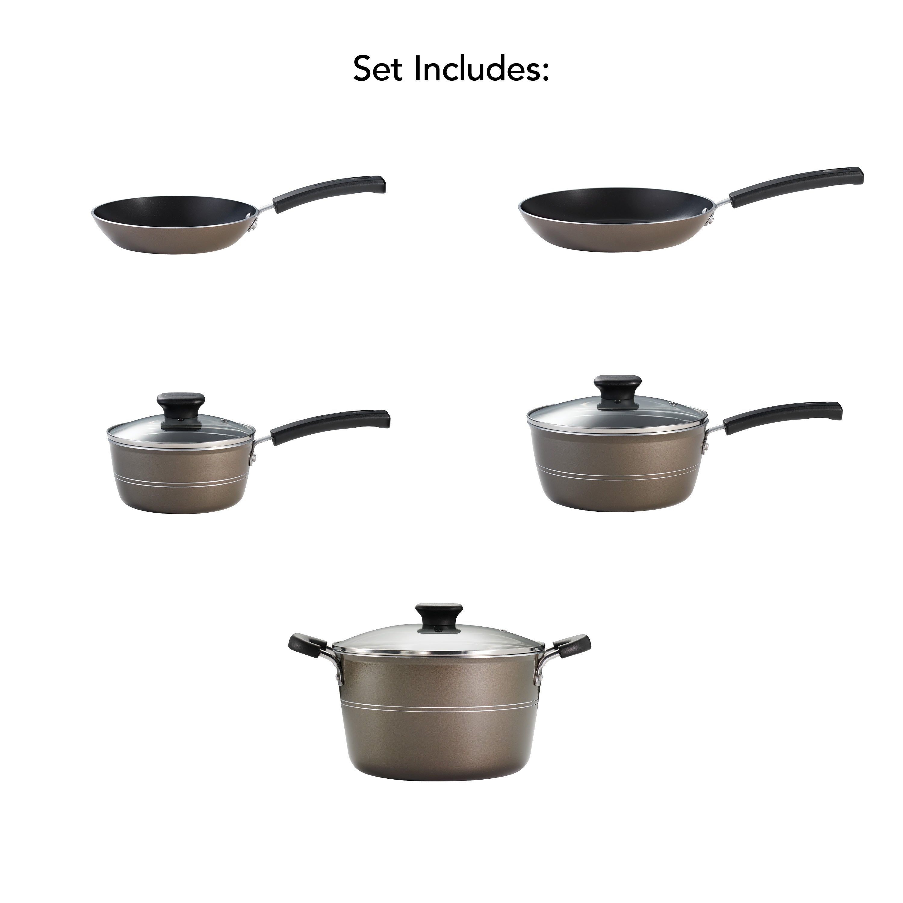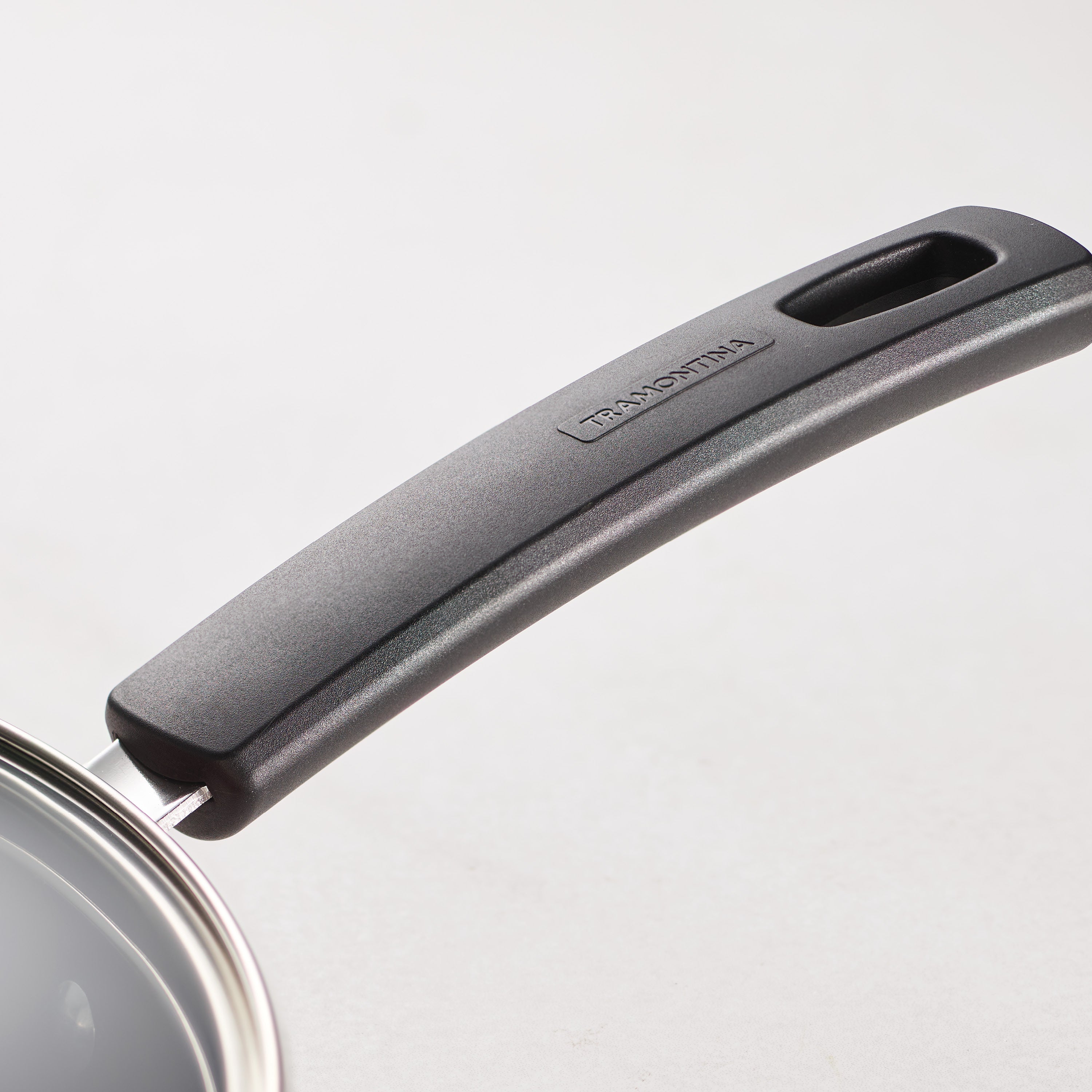 Tramontina's Sicilia Aluminum Nonstick Cookware Set has everything you need to saute hot liquids, reheat soups, deep fry chicken, and create virtually endless meals. The even gauge construction and heavy-gauge aluminum exterior of each piece means you'll have this cookware set in your kitchen for years to come. The Starflon Excellent nonstick interior finish is Tramontina's proprietary nonstick system, which makes clean up less stressful. The matching heat and shatter resistant tempered glass lids have a vent hole and stainless steel rim, allowing you to watch the process of your meal while it's cooking. The handles are Sicilia style stamped shank with over molded Bakelite, which means this cookware set is not for oven use. The entire set is made in Brazil and available in several colors.