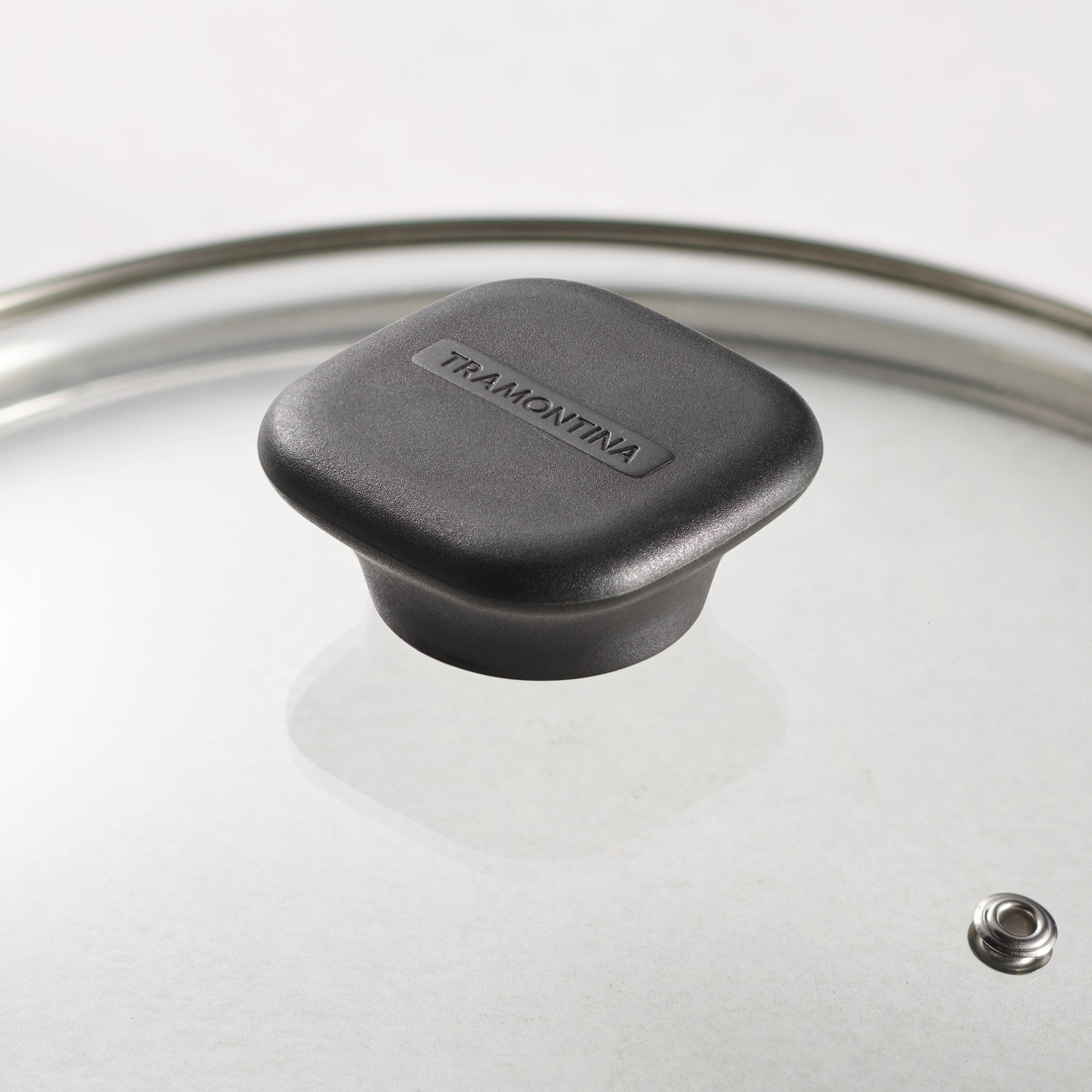 - Heat and shatter resistant tempered glass lid with vent hole and stainless steel rim