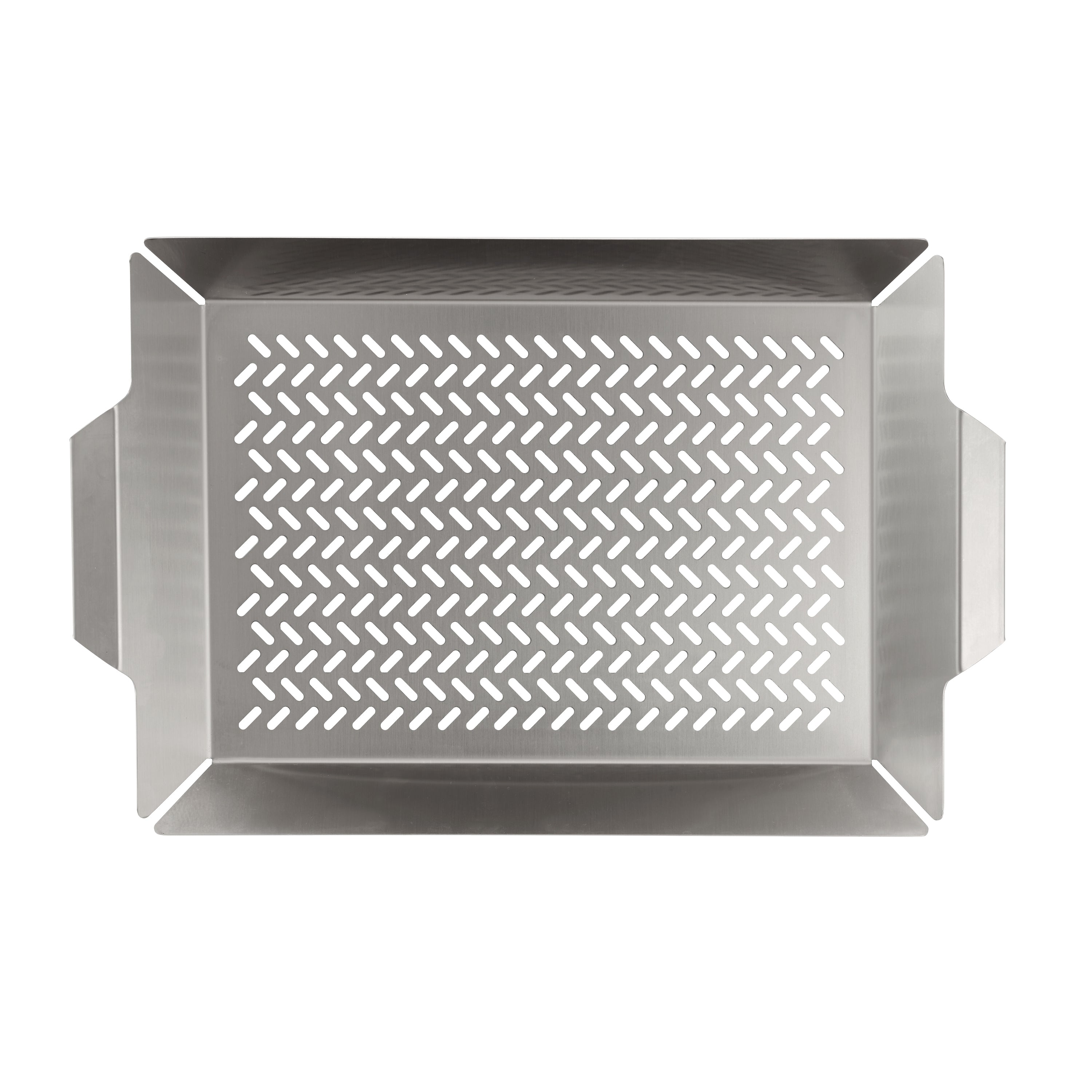 Tramontina's large Outdoor Roasting Grill Pan gives grill masters the chance to go beyond barbecue for full-flavored roasted meats and vegetables. Combining the durability of premium 18/10 stainless steel with our signature quality, this pan is perforated to allow heat and smoke to circulate, infusing your food with intense, rich, smoky flavor. Integrated side handles feature flat, rolled edges to accommodate oven mitts. Dishwasher-safe, with a Lifetime Warranty, this is a must-have for grillers and outdoor chefs!