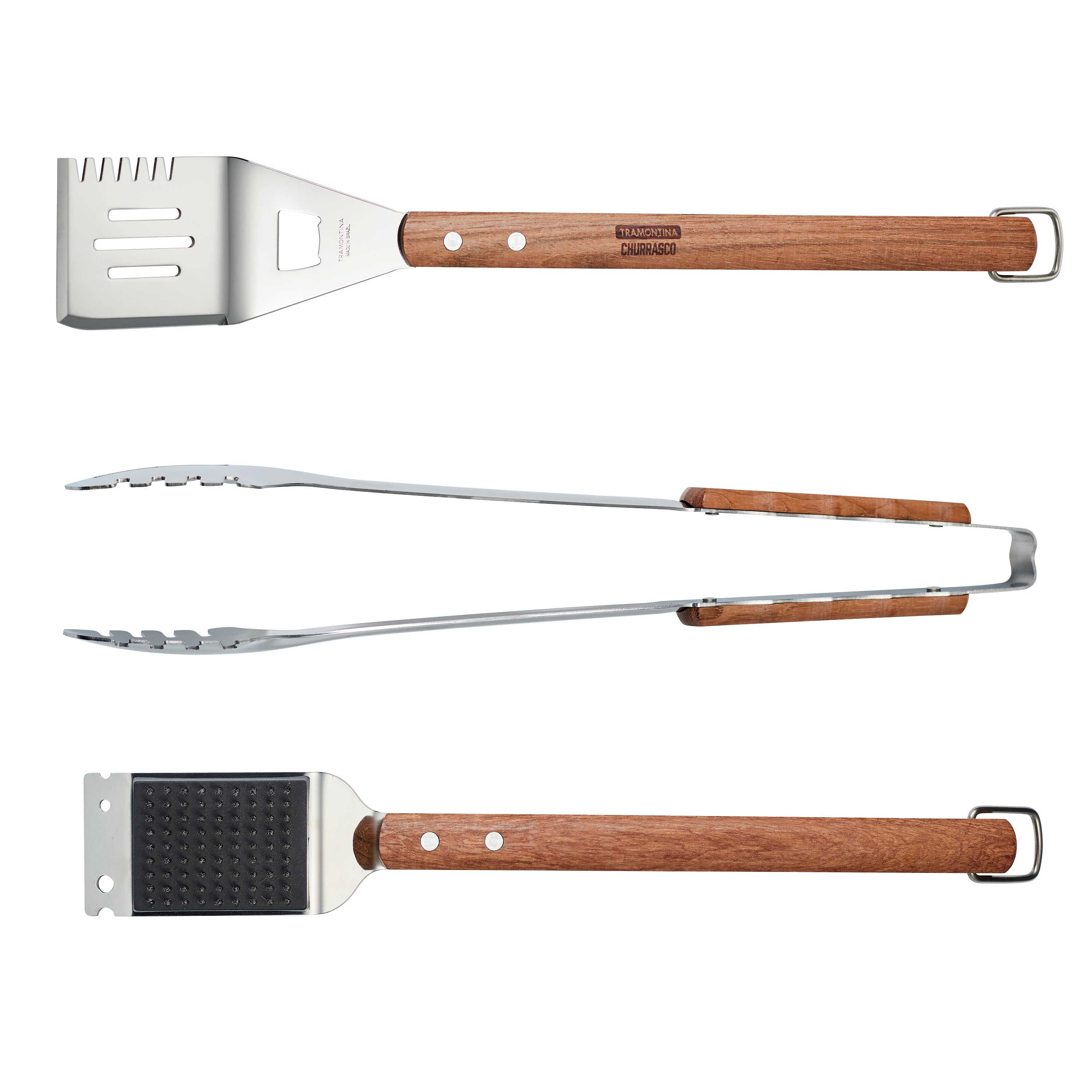 Use Tramontina Churrasco line of products to perfect your grilled meals. Prepare and serve your grilled masterpieces with ease, using Tramontina Churrasco Spatula and Barbecue Tongs. Their long, wooden handles make it easy and safe for you to handle meats and vegetables, while the stainless steel construction offers extended durability for even the busiest grill master. After your grilled favorites have been enjoyed, Tramontina's Churrasco stainless steel grill brush is strong enough to remove food residue from your grill so it is ready for the next barbecue.