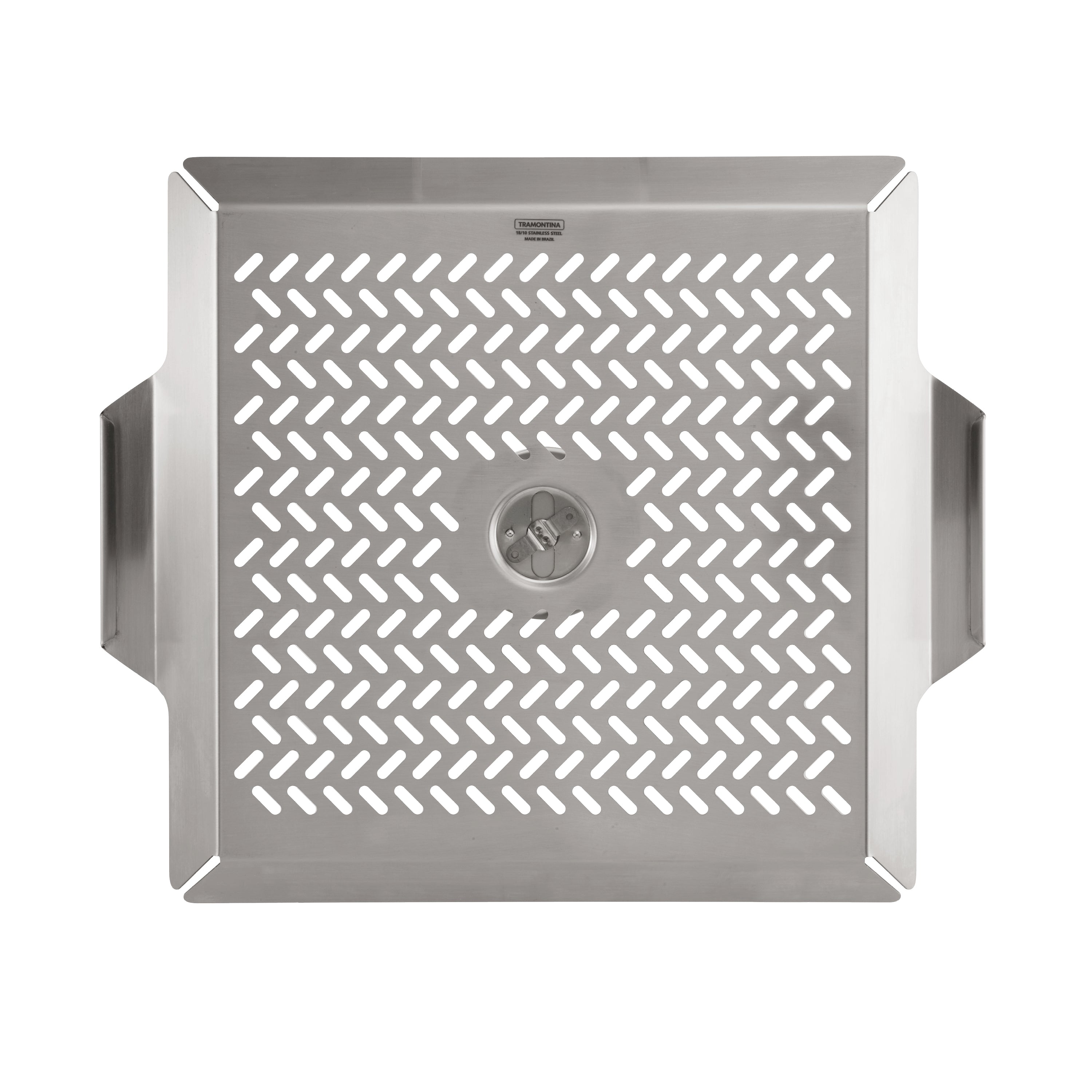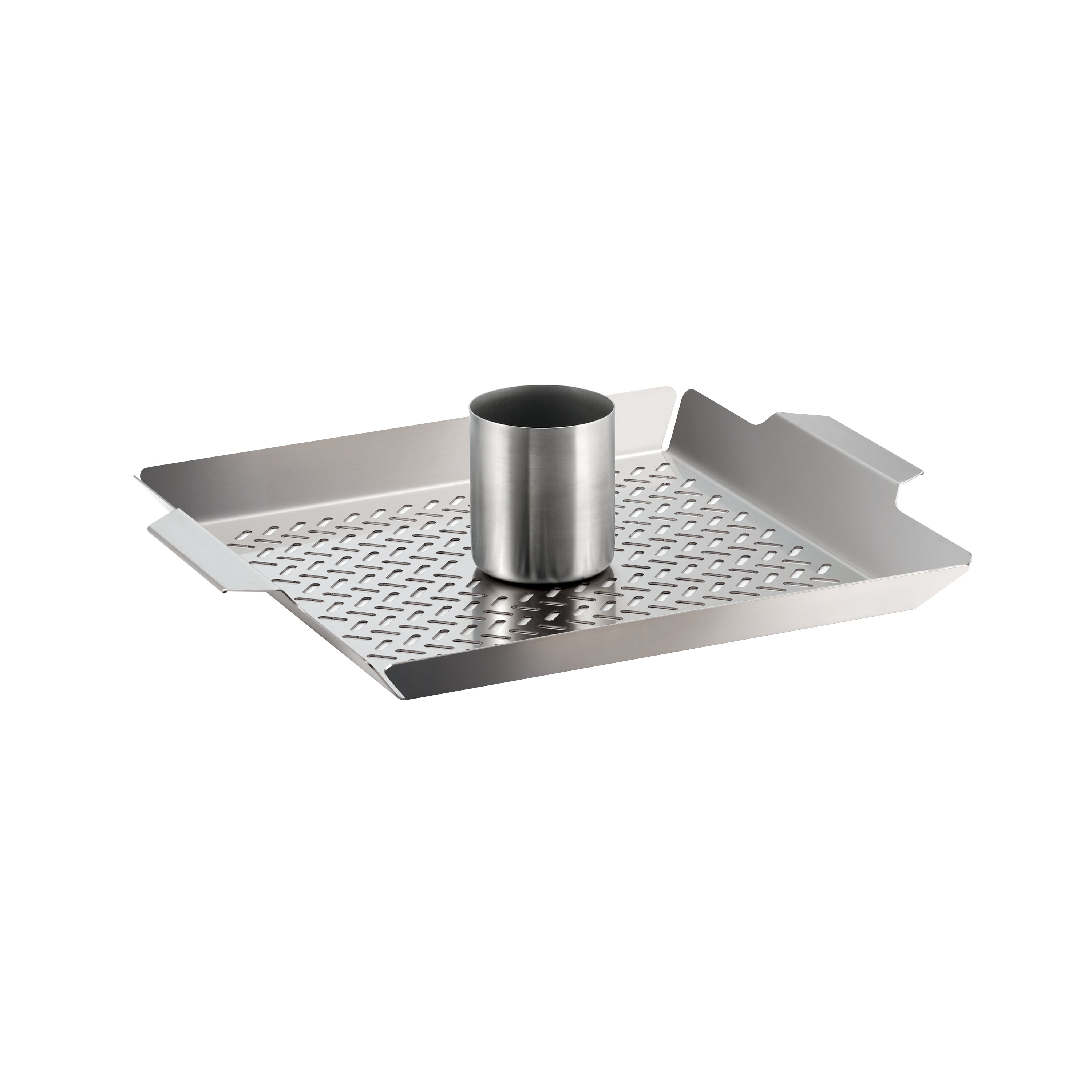 Take your grilling game to the next level. Add roasting to your repertoire with the Tramontina Outdoor Chicken Roaster with Can. Combining the durability of premium 18/10 stainless steel with our signature quality, this pan is perforated to allow heat and smoke to circulate, infusing your food with intense, rich, smoky flavor. If mouthwatering roasted chicken is on the menu, use the included cylinder to hold the chicken upright while roasting. Integrated side handles feature flat, rolled edges to accommodate oven mitts. Dishwasher-safe, with a Lifetime Warranty, this is a must-have for grillers and outdoor chefs!