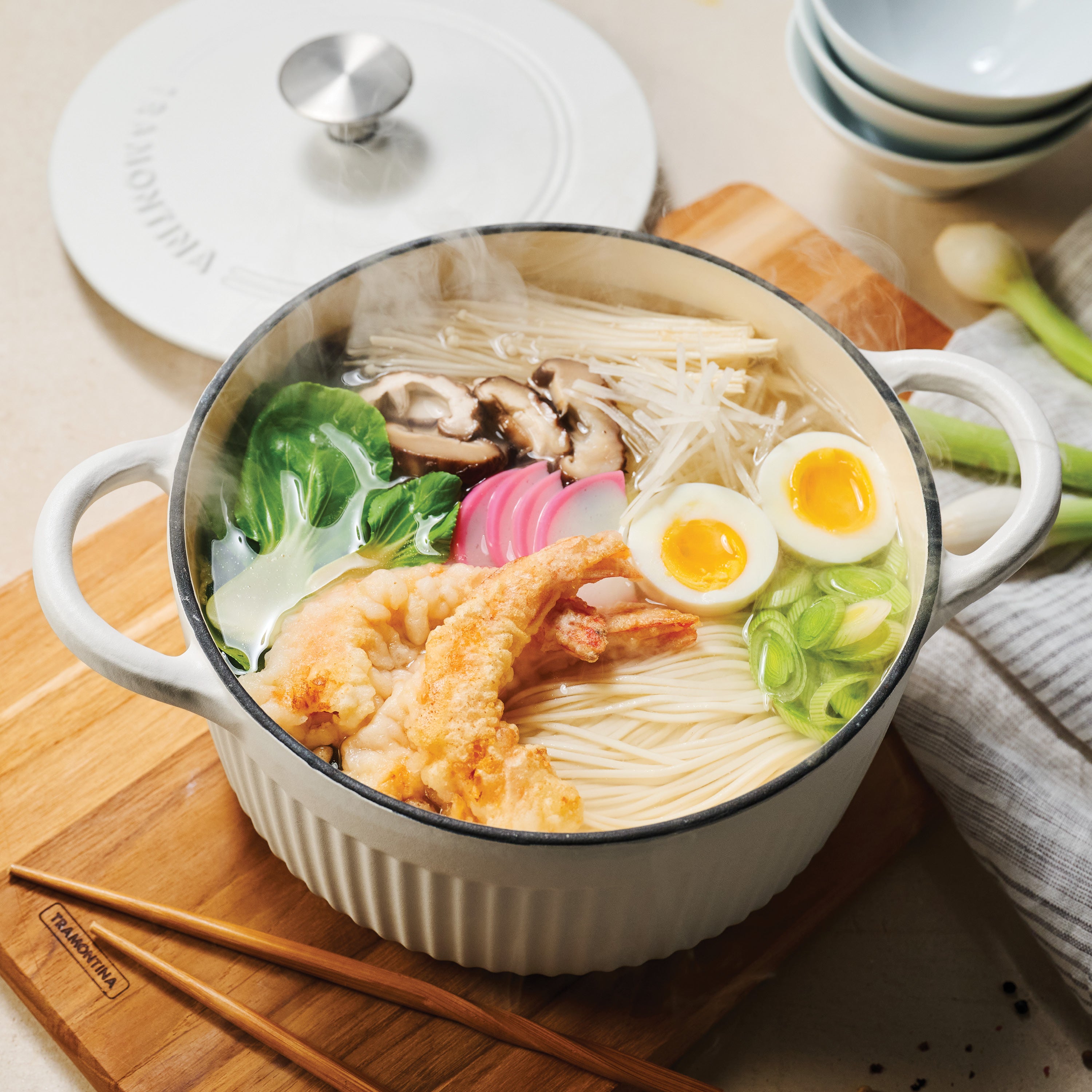 Cook with confidence using the Tramontina Mesa 3.5 Qt Enameled Cast Iron Dutch Oven. This classic kitchen staple is designed for slow-simmering soups, stews, and sauces with consistent heat throughout.