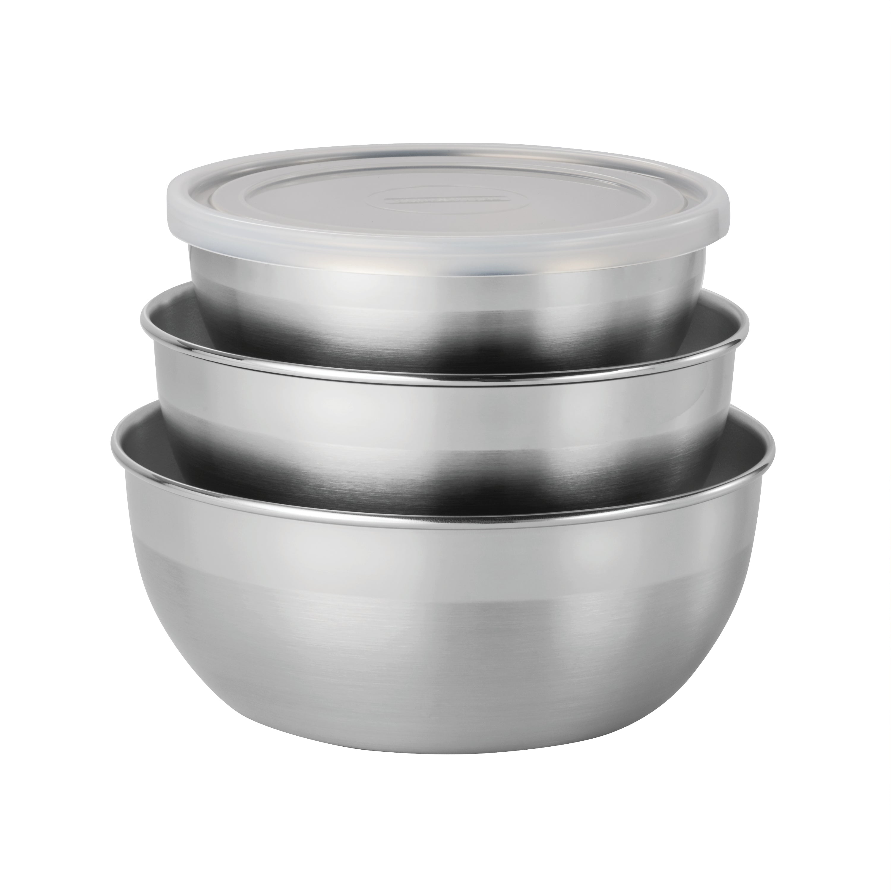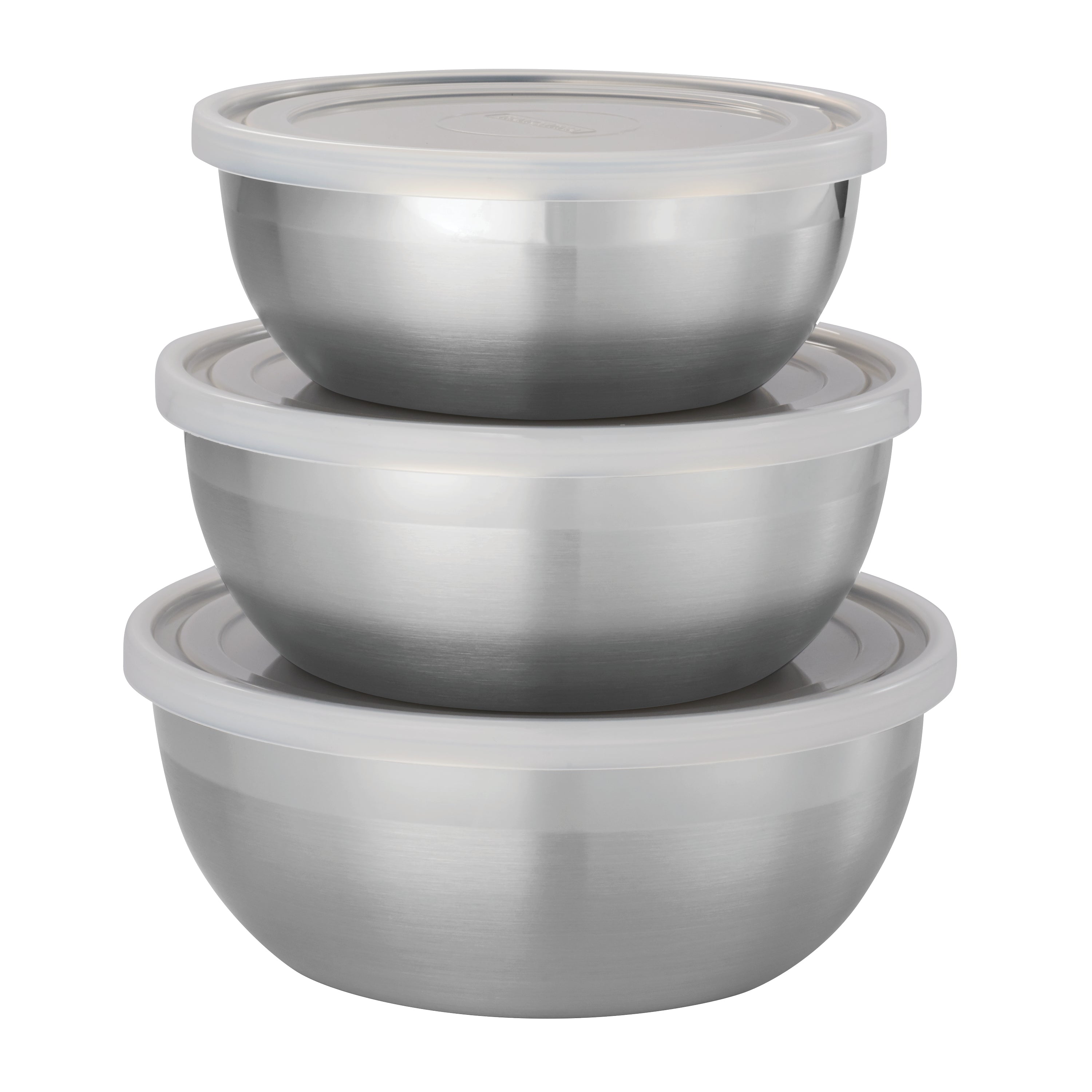 If finding the right container for food storage or prep has become harder than it needs to be, here's your solution. Tramontina's 3 Pc Stainless Steel Round Containers each have their own plastic lid, that will seal and preserve your food in the refrigerator, the freezer, the cupboard, or the pantry. A sleek, rounded design, along with its contemporary stainless steel construction, make the set hygienic and easy to clean.