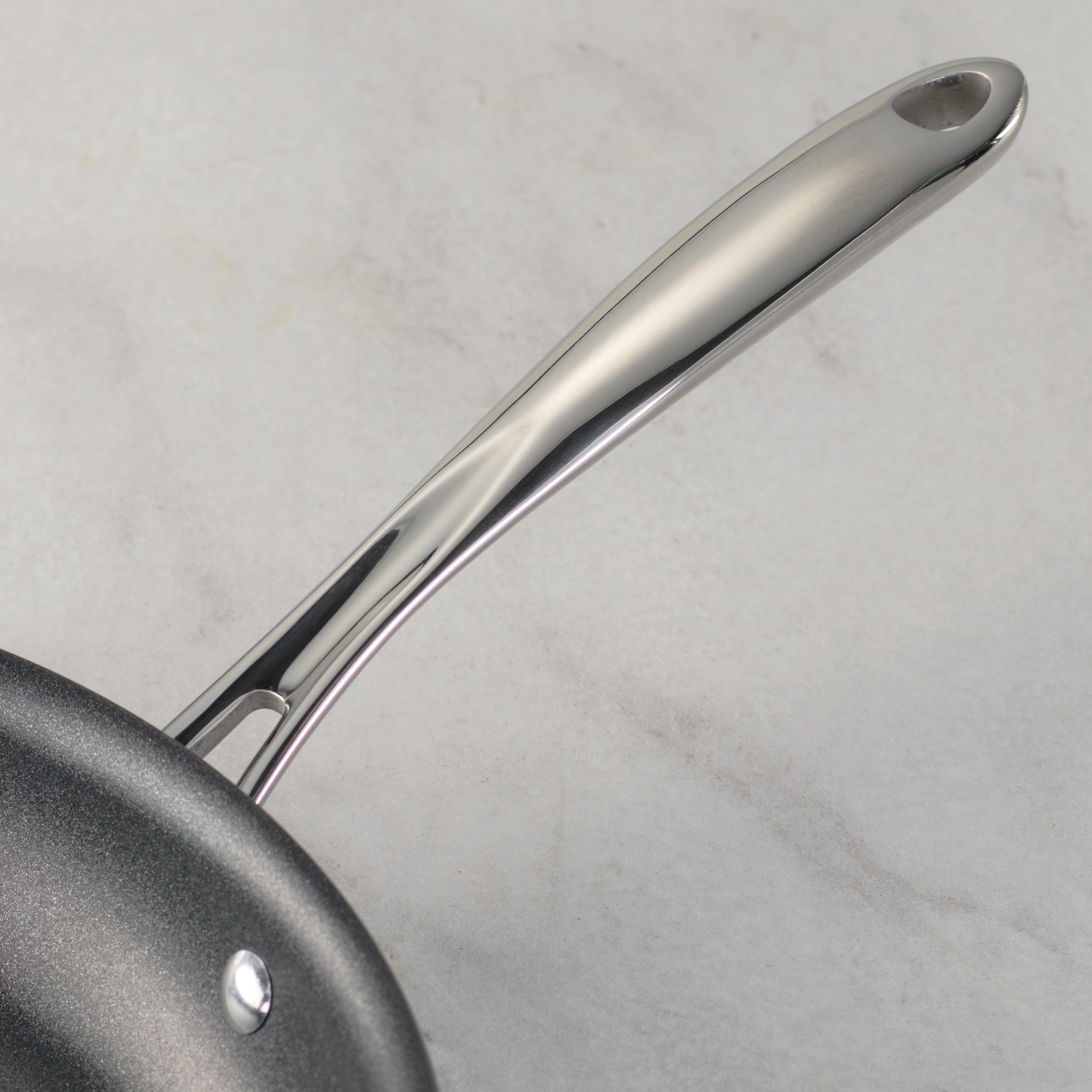 Whether you're managing a busy kitchen or looking for long-lasting cookware that can prep just about anything, Tramontina's Gourmet 8 Pc Heavy-Gauge Hard Anodized Aluminum Nonstick Cookware fits the bill. Made from heavy-duty, hard-anodized aluminum, each piece in the set is made to conduct heat evenly and quickly for cooking delicate fish and hearty meats. Hard-anodized cookware is known for its durability, resistance to scratching, and versatility. A smooth, dark gray, fine satin finish covers the cookware's exterior, while a reinforced, nonstick coating covers the interior for quicker, cleaner, and healthier cooking. Maneuver your pots and pans with ease, thanks to precision-cast, mirror-polished, stainless-steel long and side handles. You'll be able to watch your cooking progress with the set's heat- and shattered-resistant tempered glass lids with wide-band stainless-steel rim that features a fine satin finish. The set is compatible with gas, electric, and ceramic glass cooktops, and oven-safe up to 350°F / 176°C. Hand-wash to clean. This set includes all the essential pieces you need to prepare meals for you and your family.
