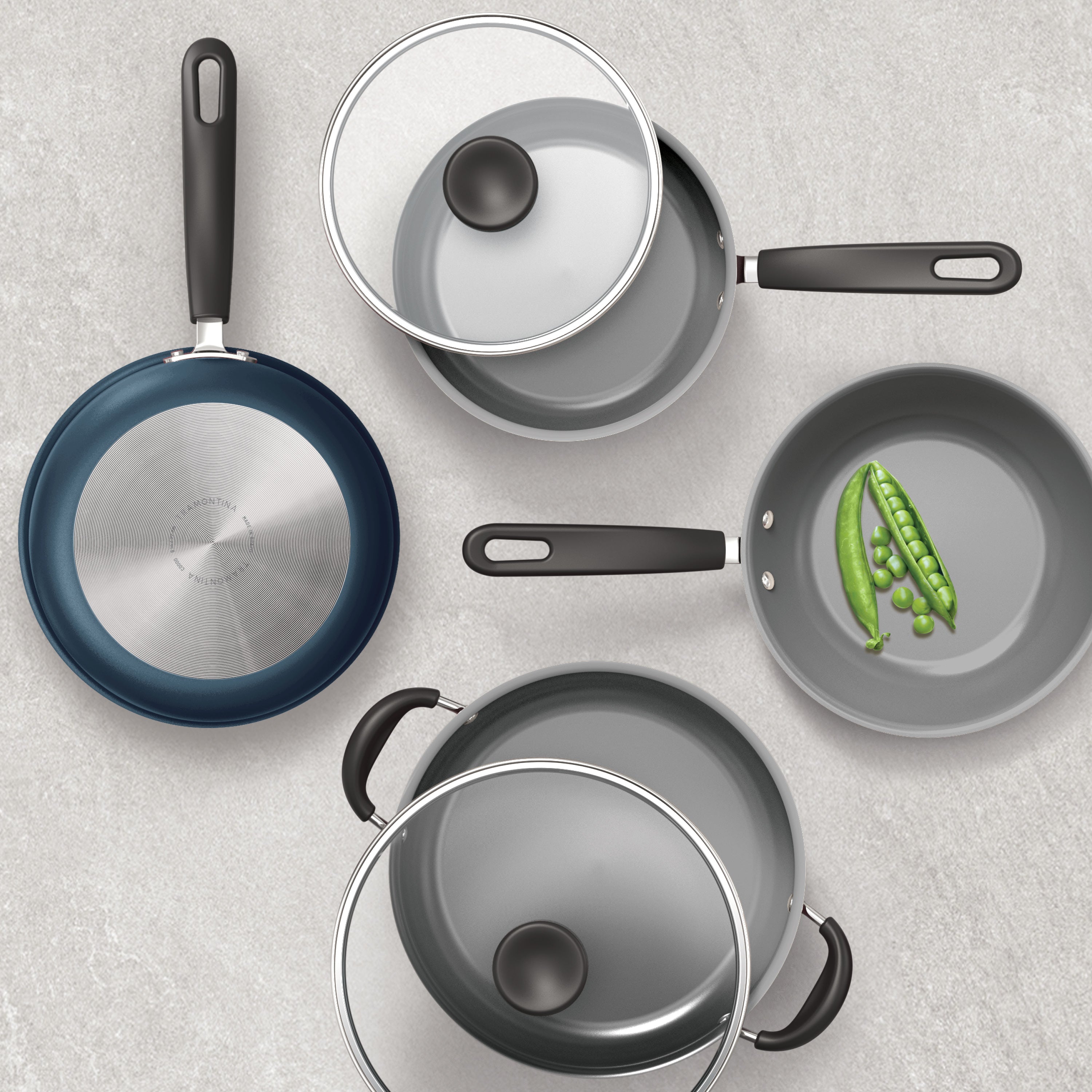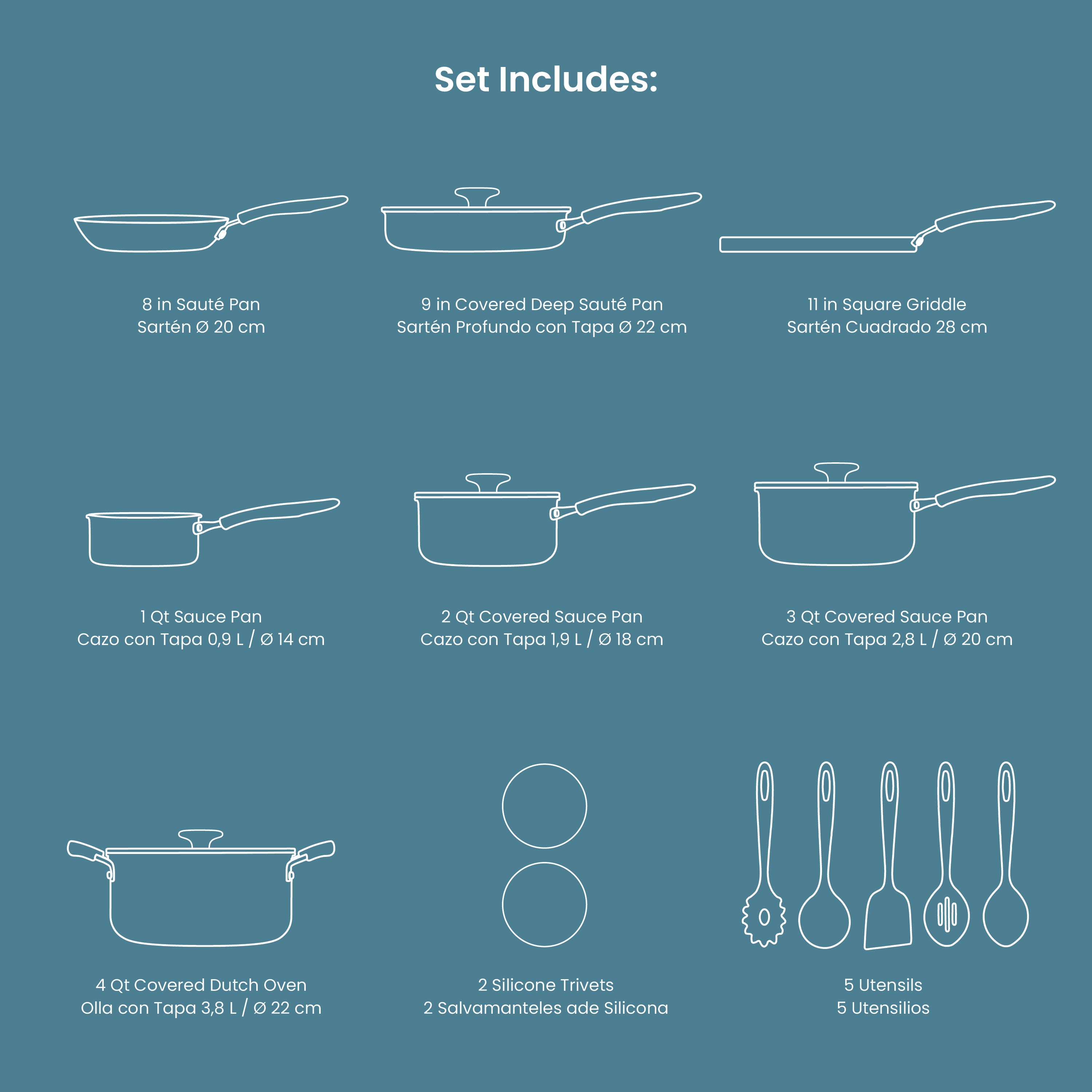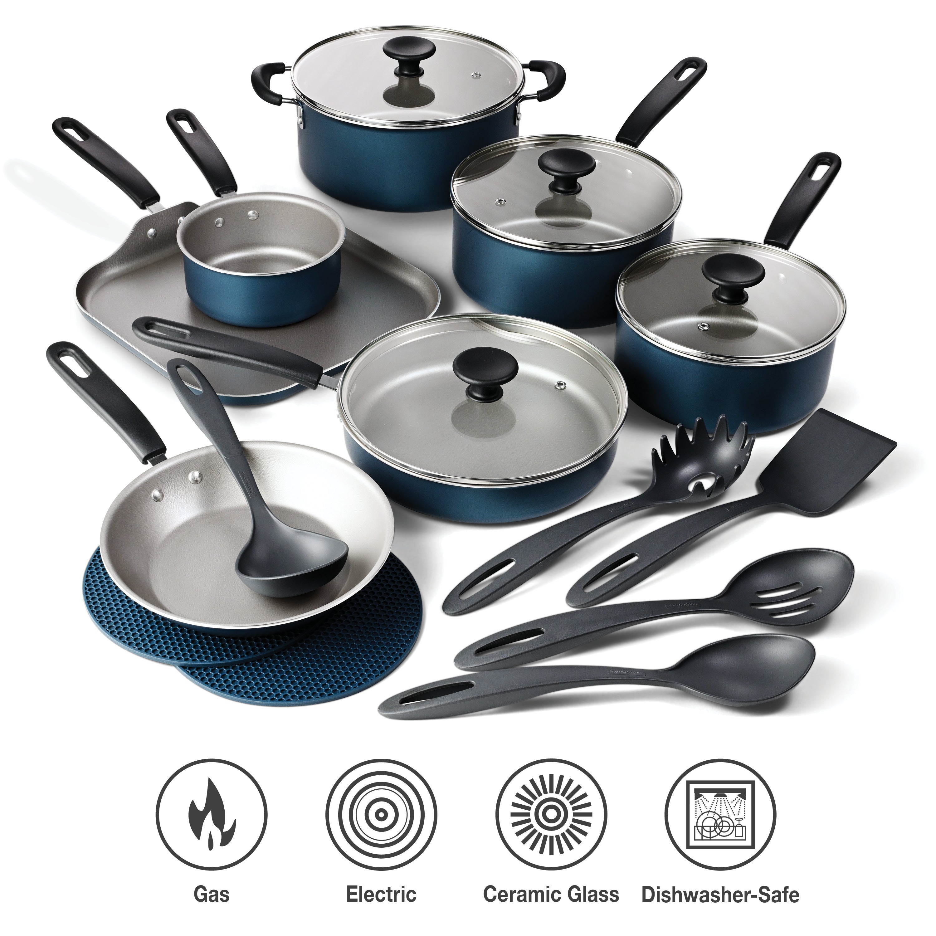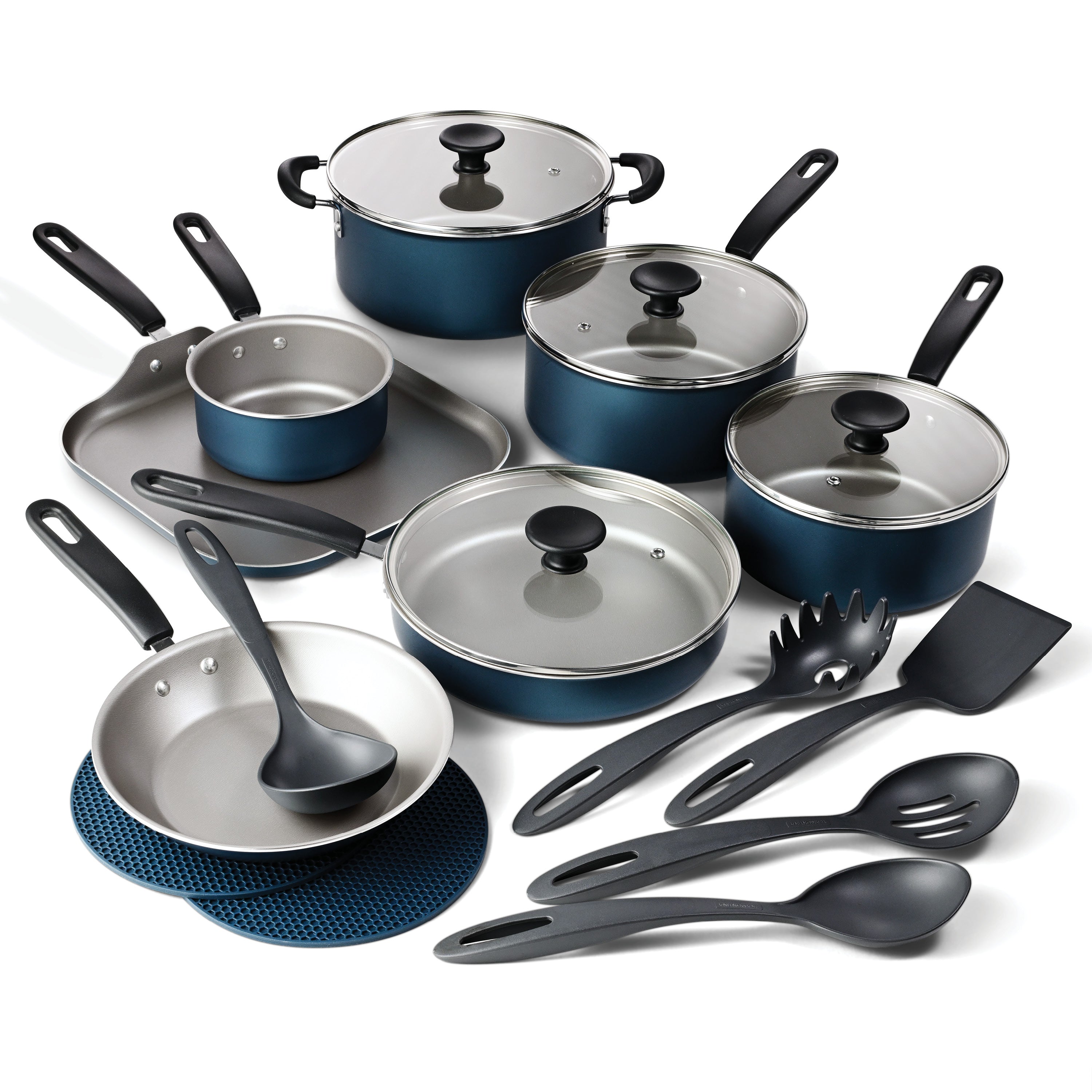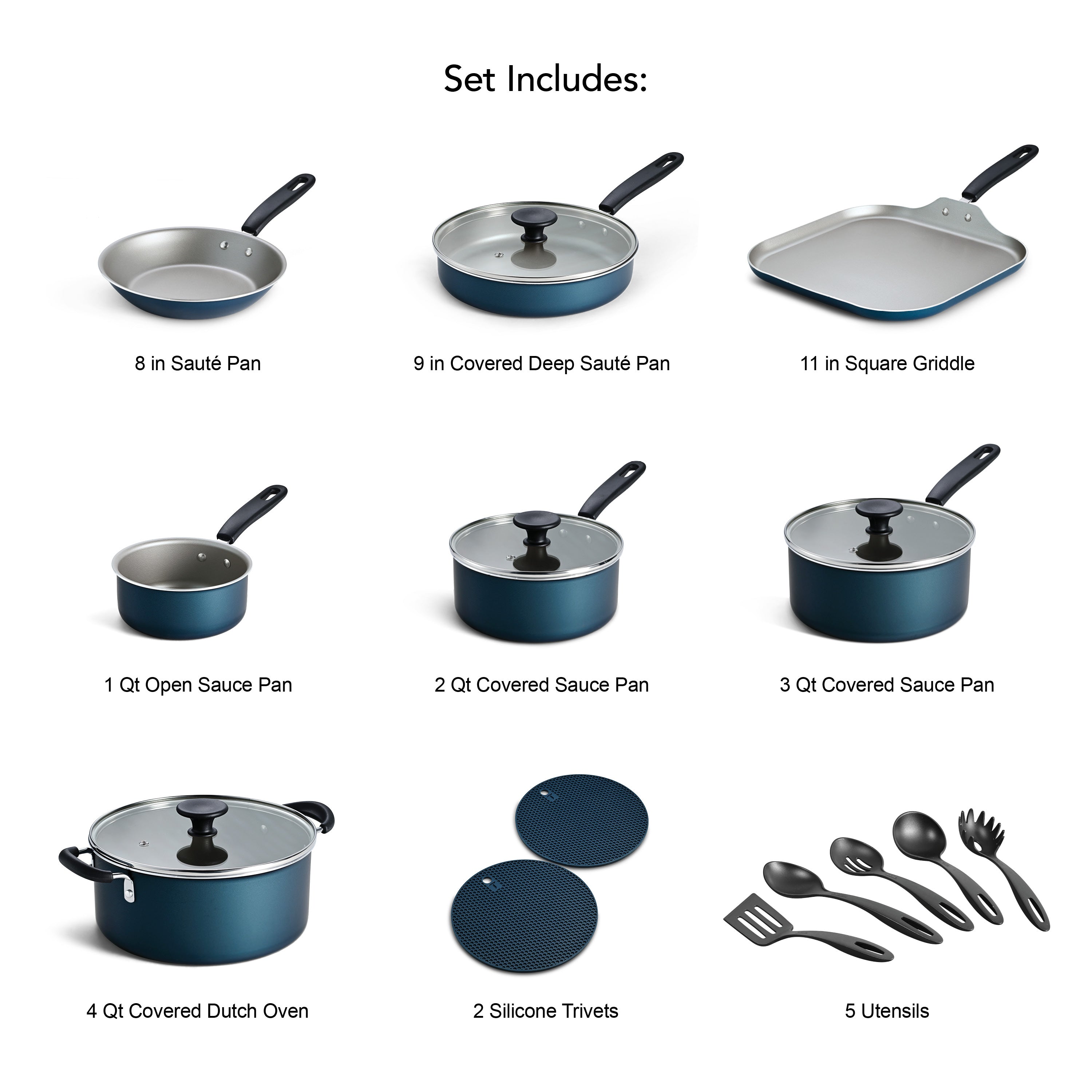 • Complete 18-piece cookware set for everyday meals