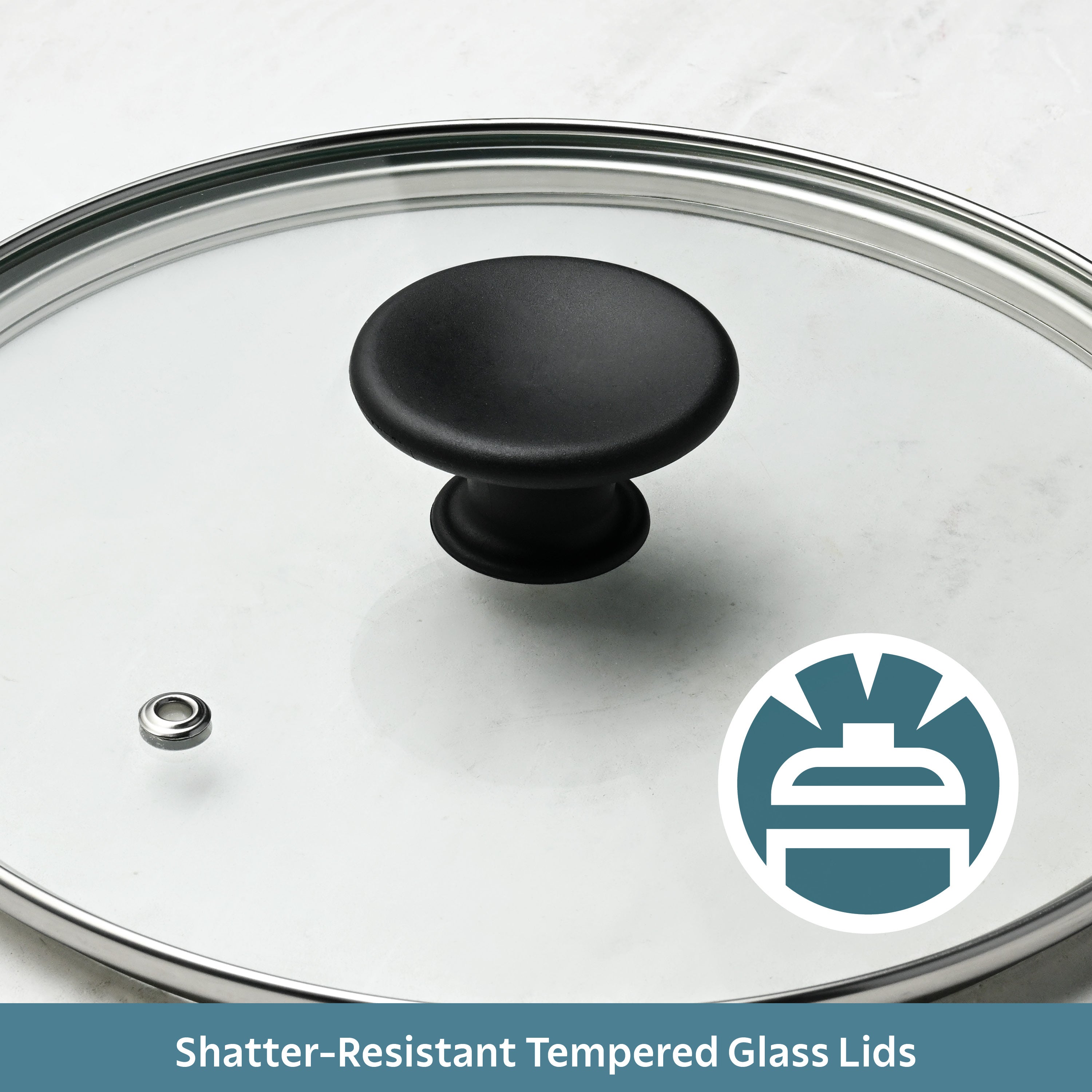 • Tempered glass lids let you monitor cooking without lifting