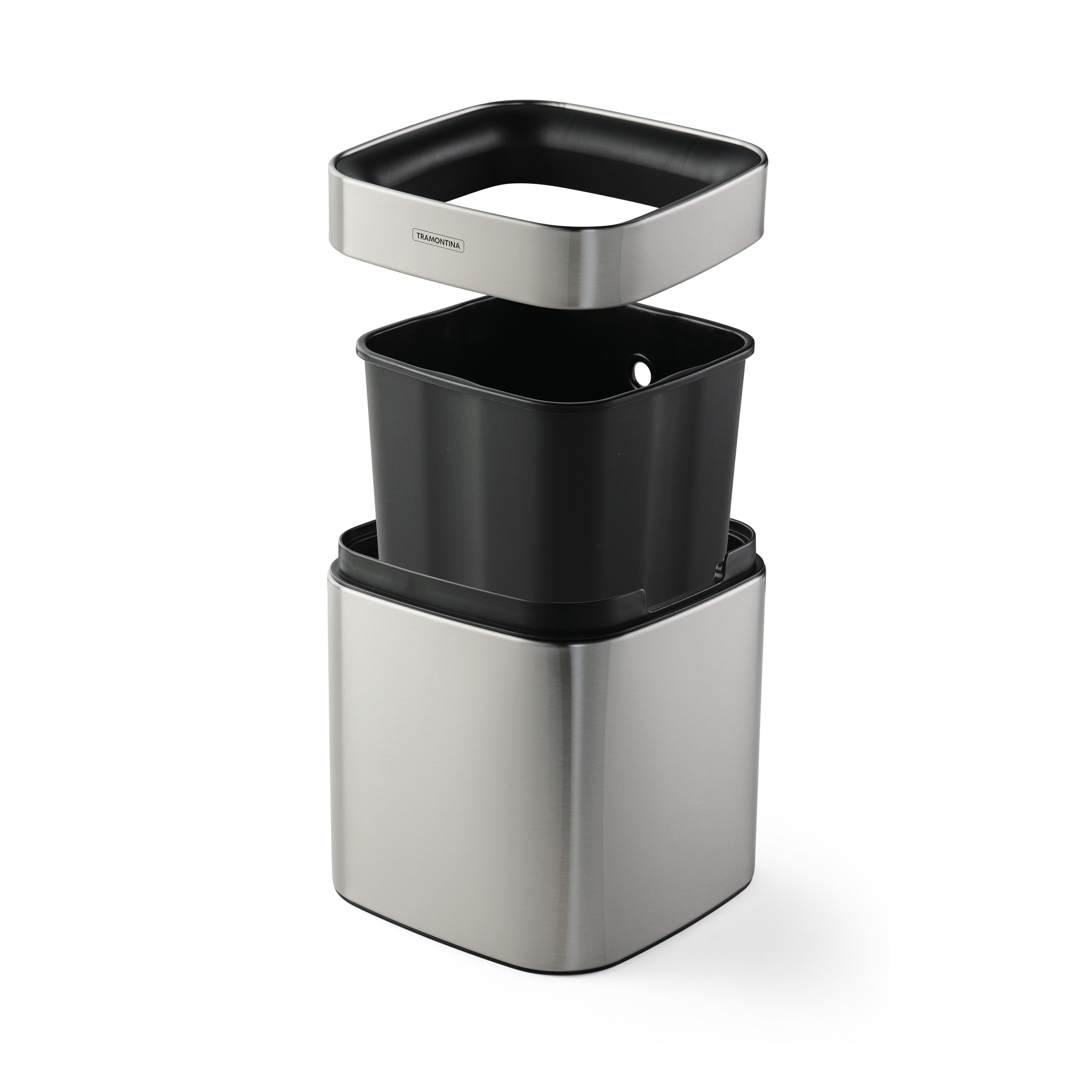 The Tramontina 2.11 Gallon Stainless Steel Square Open Top Bin is a sleek and convenient waste management solution for kitchens, bathrooms and offices. It's generous capacity yet compact size makes it the perfect option for small spaces. Crafted from high-quality stainless steel helps keep the bin print and stain free. The open top design lets you dispose of waste without lifting a lid. The removable insert makes cleaning easy while the bag tuck hole makes changing bags a breeze. The Tramontina open top bin is the stylish and handy way to manage your waste.