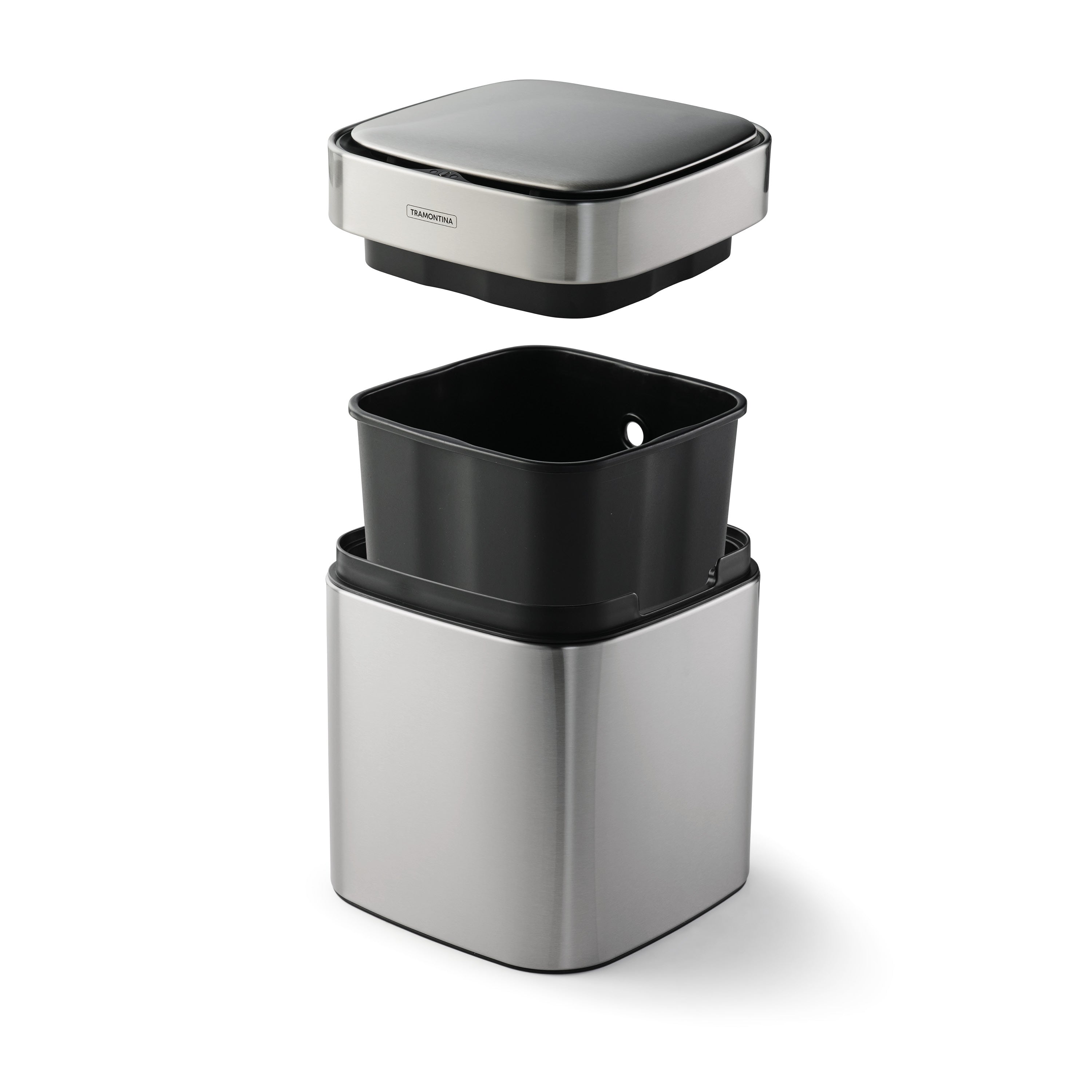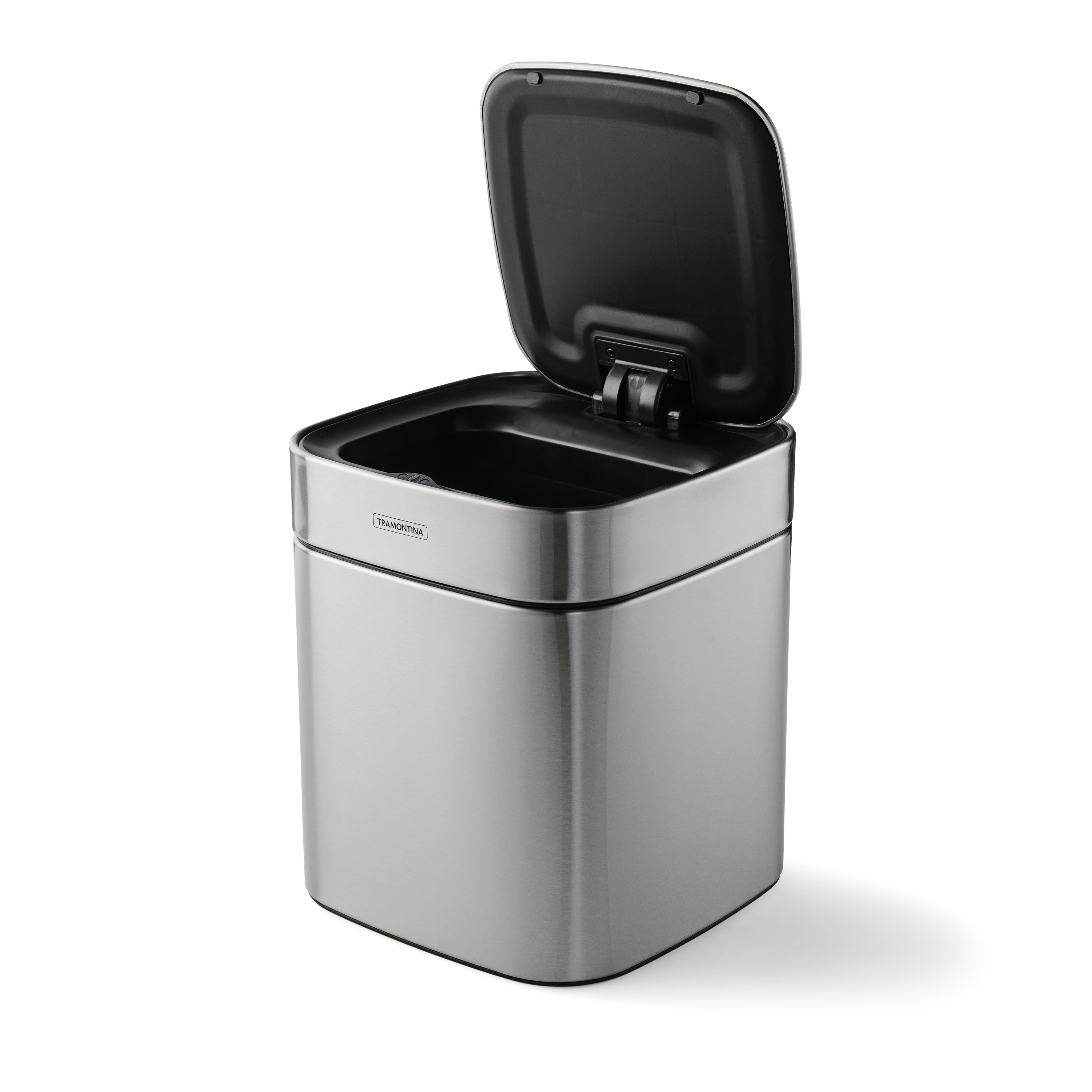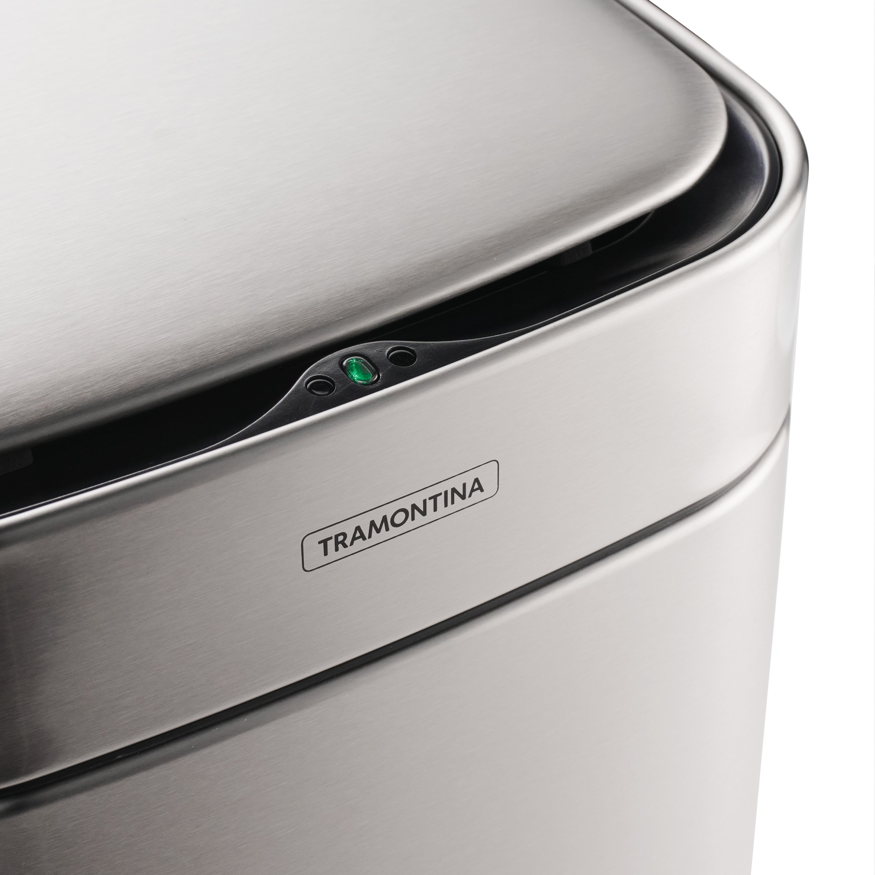 The Tramontina 2.11 Gallon Stainless Steel Square Sensor Bin with ABS Lid is a modern, sanitary solution for waste management in your home or office. Crafted from high-quality stainless steel helps keep the bin print and stain free. The battery powered built-in sensor technology allows for touchless operation. Simply wave your hand over the sensor and the lid opens automatically and closes after 5 seconds for hands-free waste disposal. The removable insert makes cleaning easy while the bag tuck hole makes changing bags a breeze. The Tramontina sensor bin will give any space a sleek and hygienic way to manage your waste.