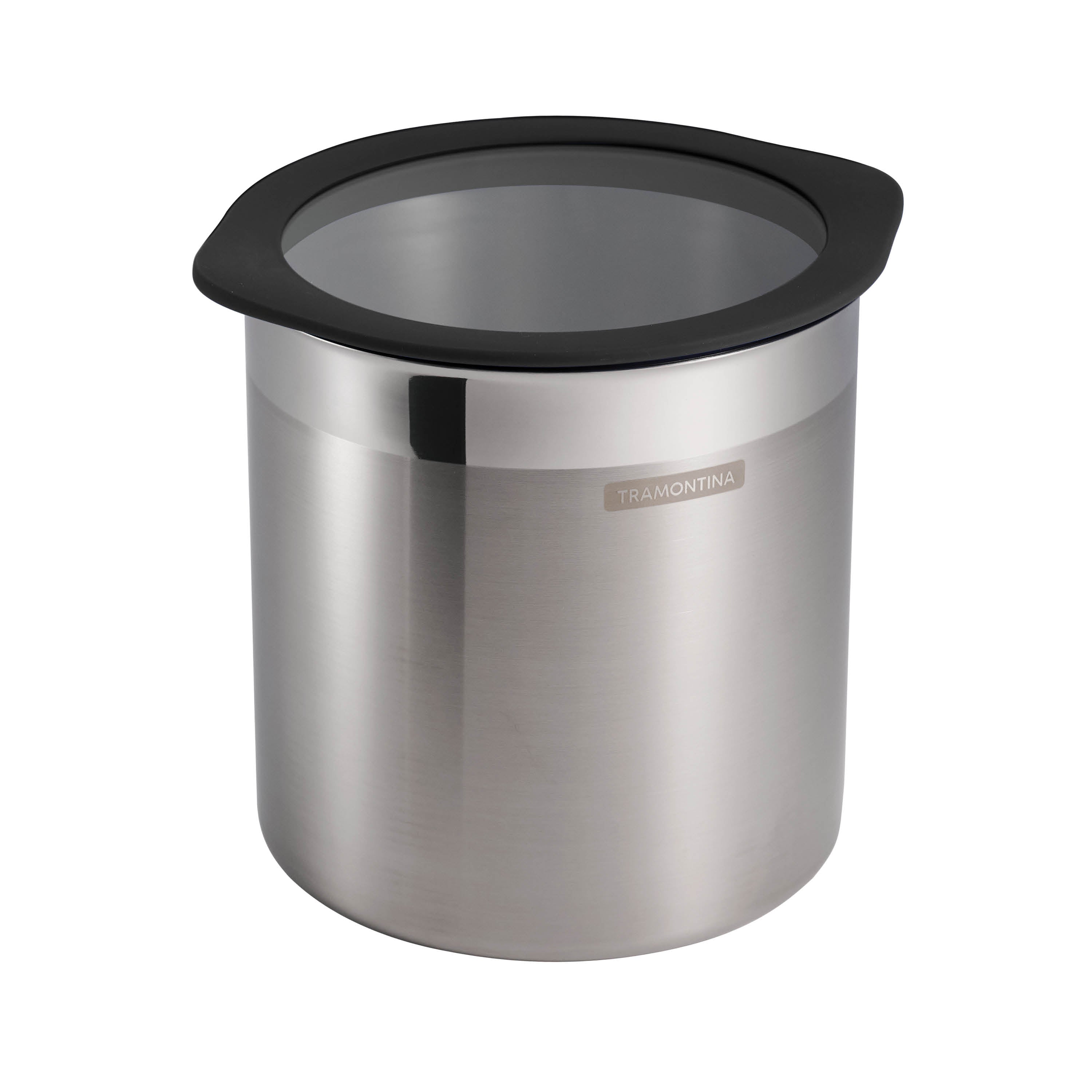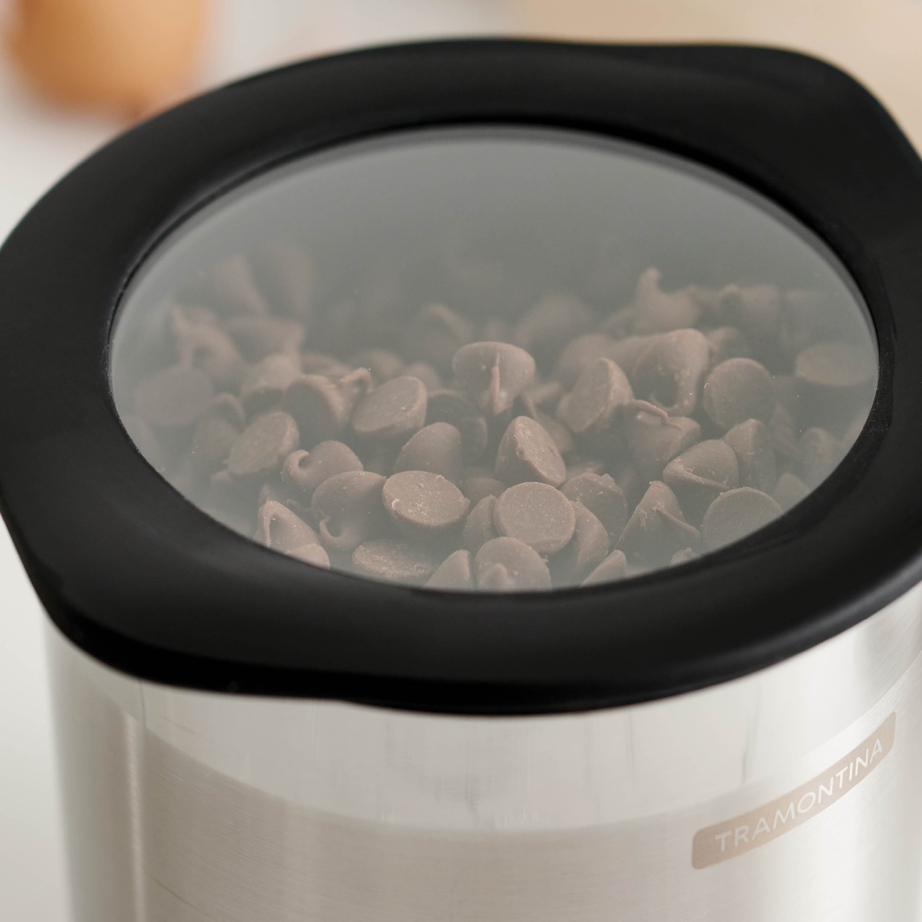 Whether you're organizing baking ingredients or storing produce, Tramontina's 4 Pc Stainless Steel Canister Set keeps foods fresh. Its deep drawn construction ensures a seamless surface and the durable 18/10 stainless steel material is made to last. The set's satin interior and exterior finish with a mirror accent border adds a modern flair to your kitchen or pantry. Each canister or container comes with a shatter-resistant, air-tight tempered glass lid, which helps keep moisture out. These lids also have natural silicone rims, allowing cooks to get a better grip and seal them on tight. These pieces are a part of the Tramontina Style Collection and have a lifetime warranty. The set includes a 1.5 Qt covered canister, 2.5 Qt covered canister, 3.75 Qt covered container, and a 5.75 Qt container. Our 4 Pc Stainless Steel Canister Set is available in a variety of colors and made in Brazil
