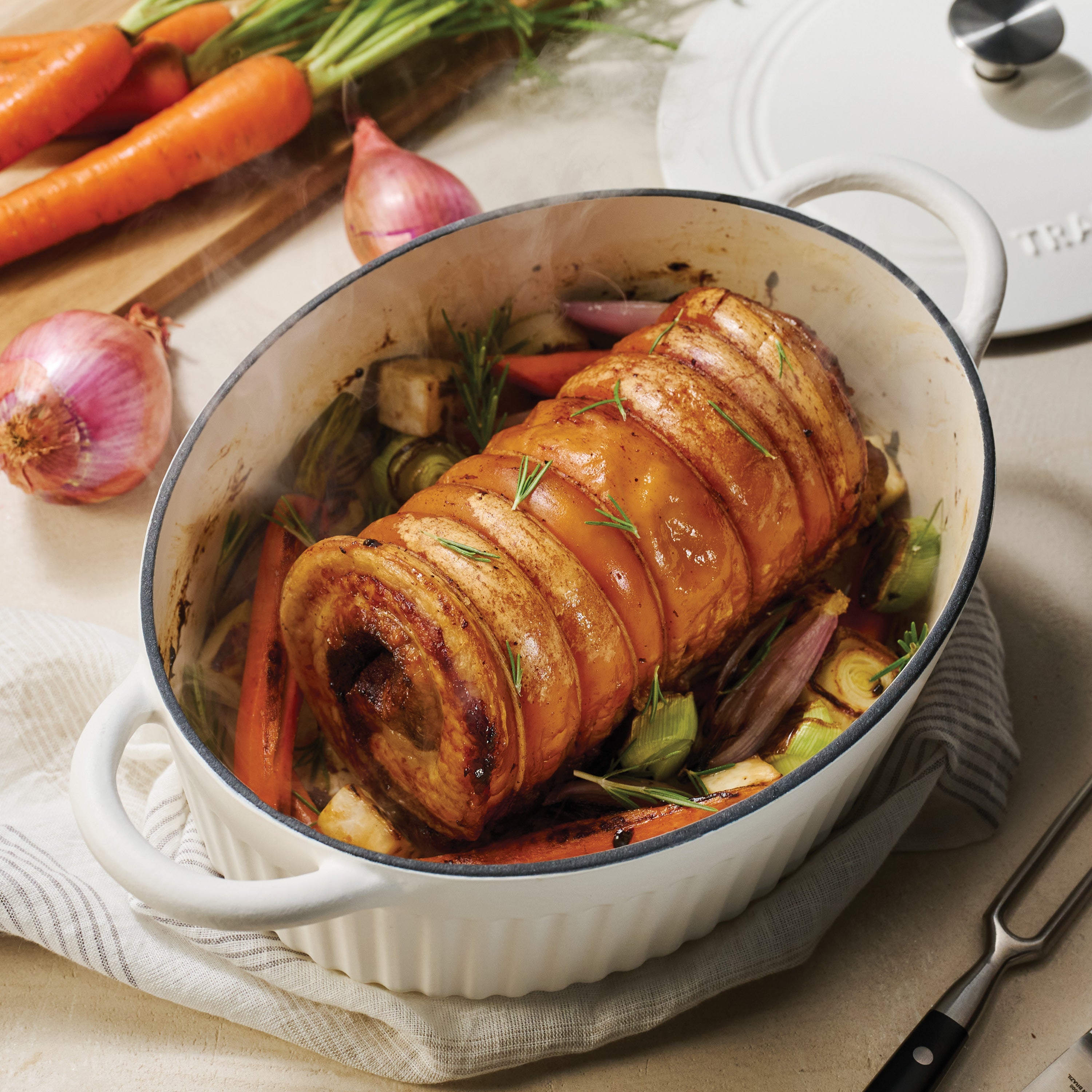 Sturdy cast handles and a tight-fitting lid make it easy to move from stove to oven, and the elegant look transitions effortlessly to your dinner table.
