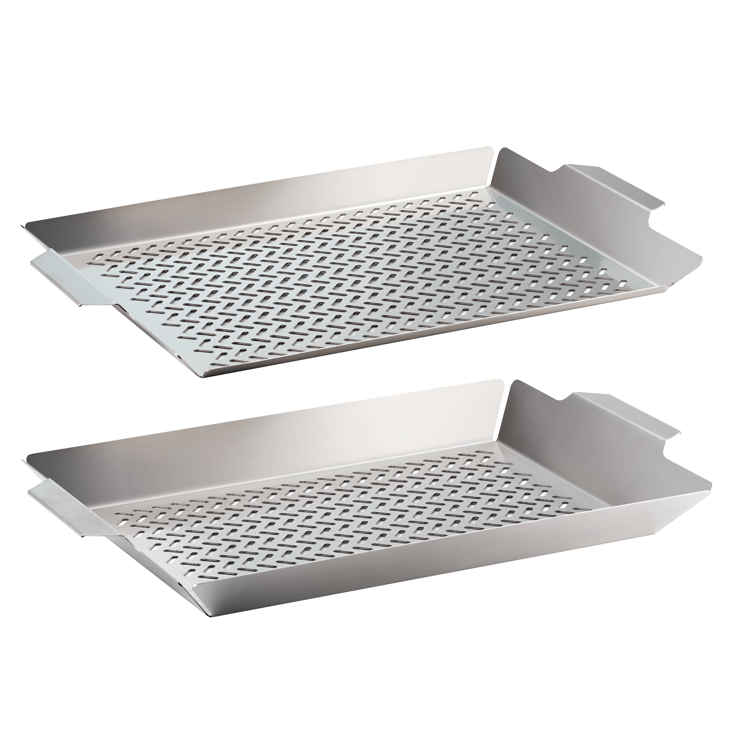 Tramontina's 2 Pc Outdoor Roasting Grill Pan Set gives grill masters the chance to go beyond barbecue for full-flavored roasted meat, tasty kebabs, and roasted veggies. Combining the durability of premium 18/10 stainless steel with our signature quality, this pan is perforated to allow heat and smoke to circulate, infusing your food with intense, rich, smoky flavor. Integrated side handles feature flat, rolled edges to accommodate oven mitts. Dishwasher-safe, with a Lifetime Warranty, this is a must-have for grillers and outdoor chefs!