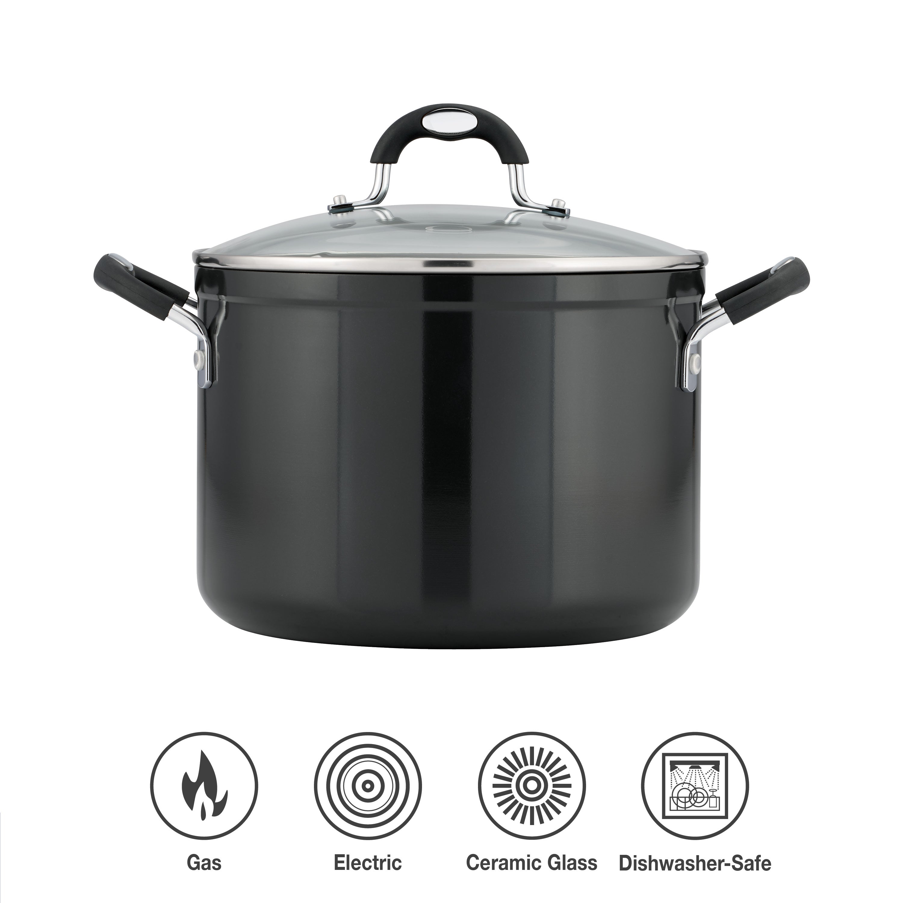 8 Quart Ceramic Nonstick Covered Stock Pot, Charcoal Gray
