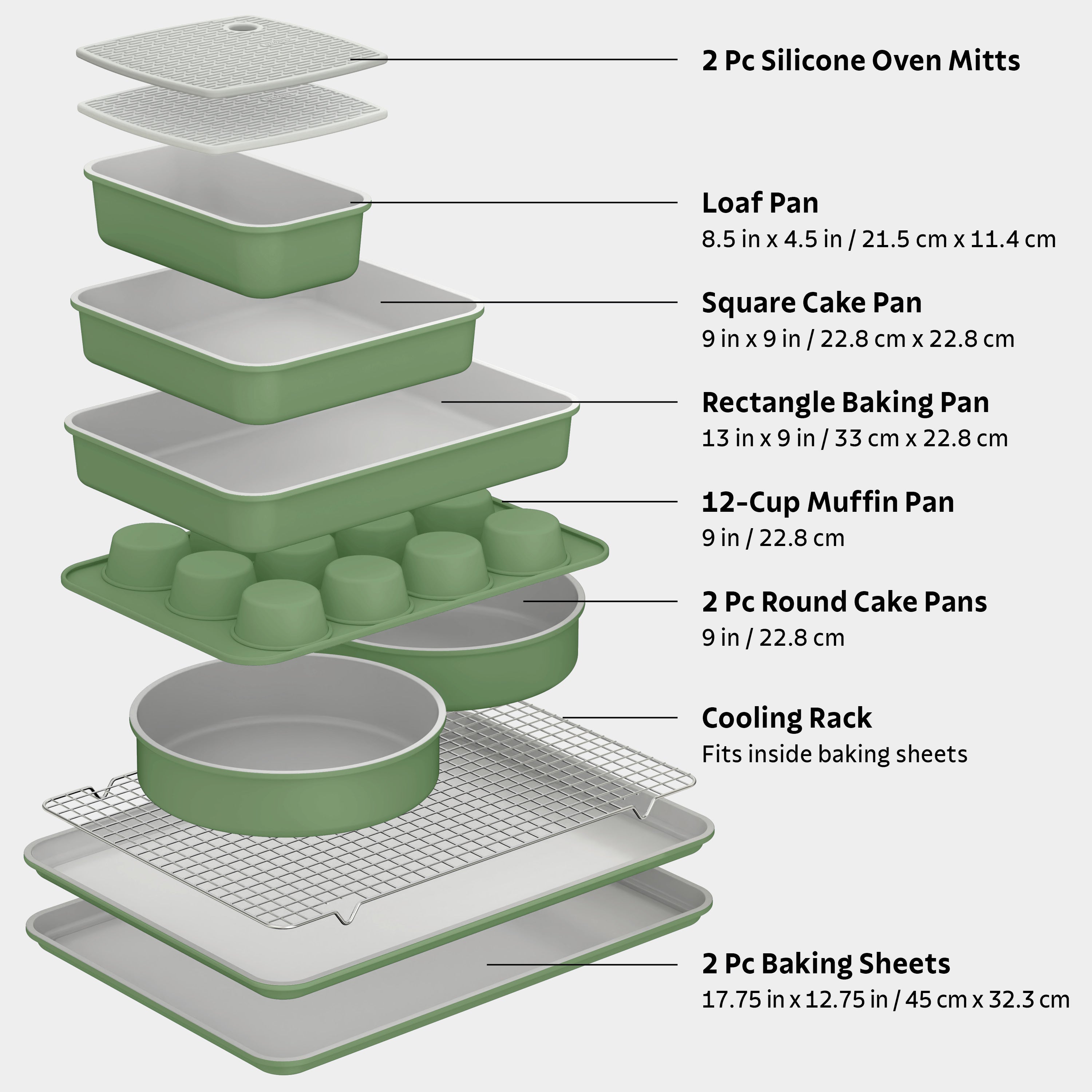 9 Piece Ceramic Nonstick Bakeware Set - Basil is backordered and will ship as soon as it is back in stock.