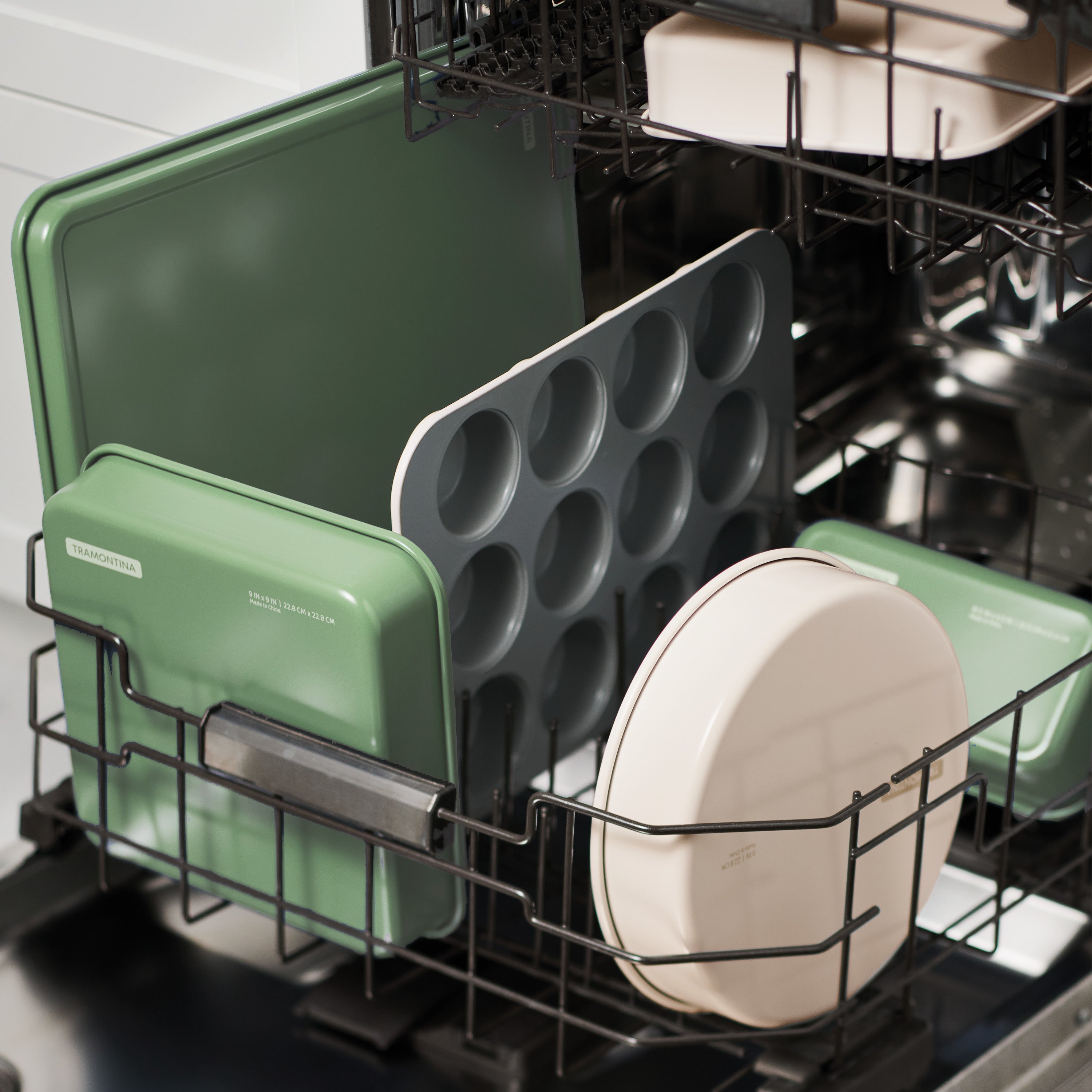 Transform your kitchen with the Tramontina 11-Piece Essential Bakeware Set, your ultimate companion for baking sweet and savory masterpieces. From baking fluffy morning muffins to creating rich, gooey brownies, this set has you covered. Crafted from durable aluminized steel with a sleek high-temperature silicone exterior and Xeradur® by Ilag ceramic nonstick interior, it promises perfect results and effortless cleanup every time. Oven-safe up to 500°F, it inspires your culinary creations, whether baking fluffy cake, crisp cookies, or savory dishes like lasagna, meatloaf, and egg bites. Complete with a stainless steel cooling rack and two silicone oven mitts, this set makes every baking experience delightful and efficient.