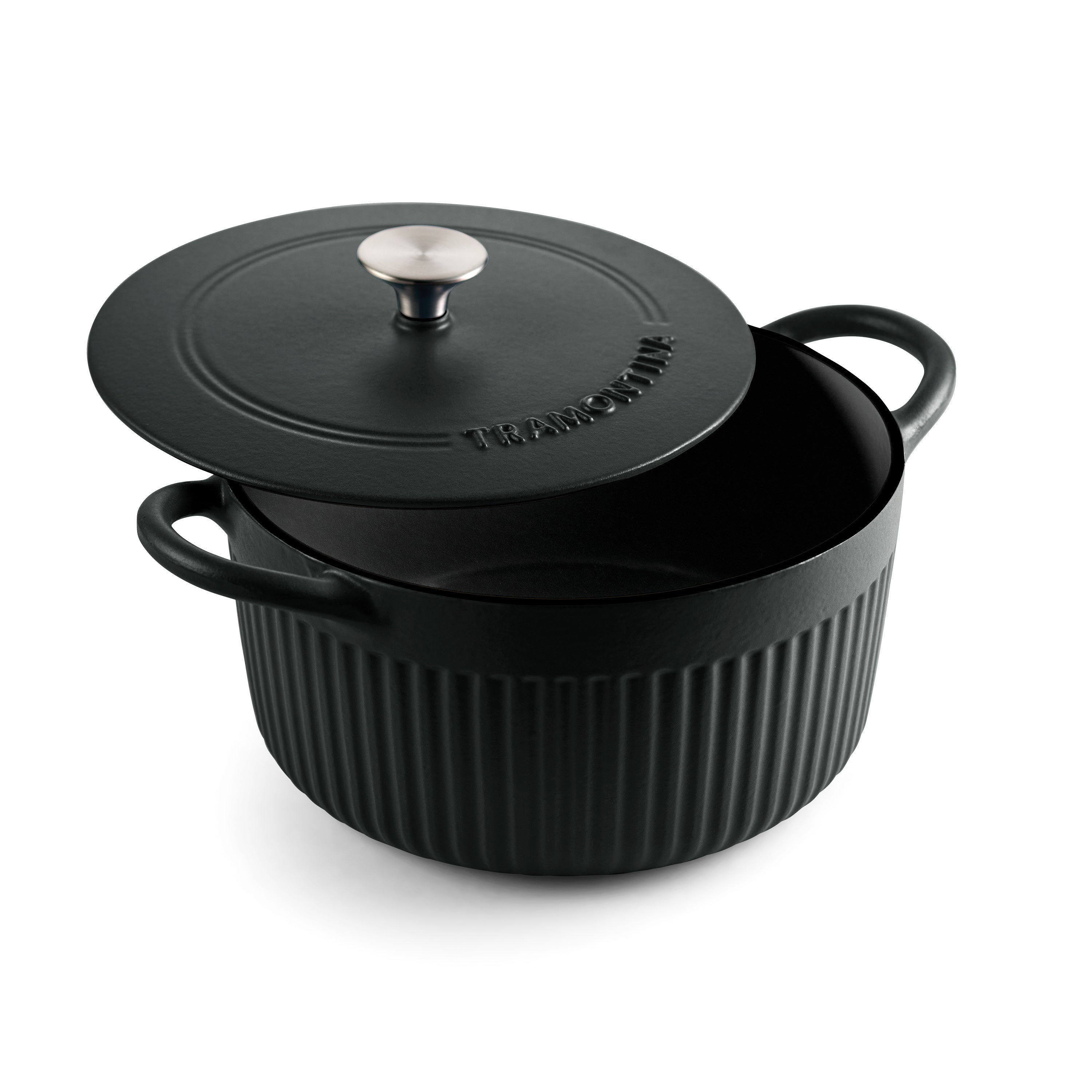 Bring flavor and function together with the Tramontina Mesa 5.5 Qt Enameled Cast Iron Dutch Oven. This larger-capacity essential is ideal for soups, roasts, and one-pot meals that serve a crowd.